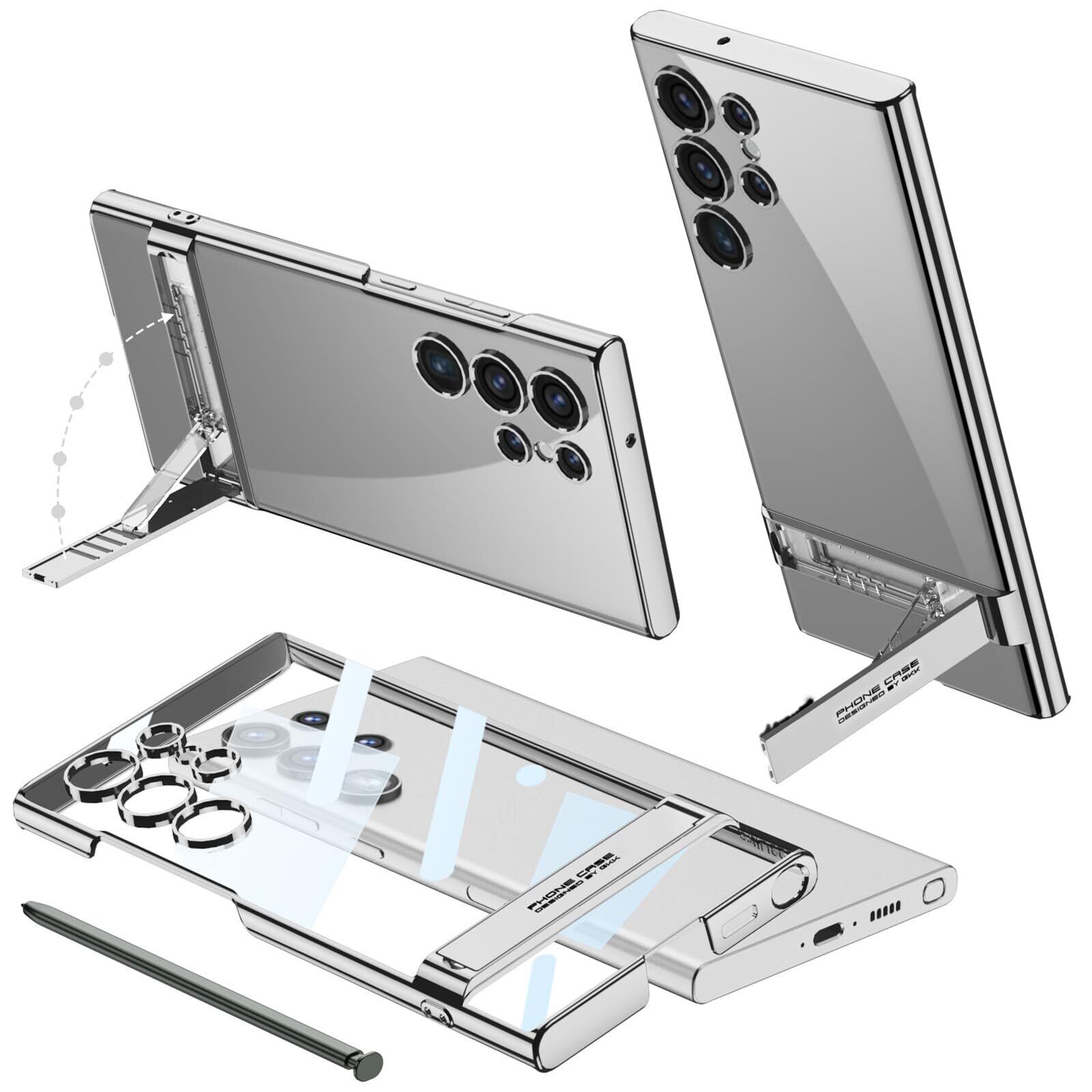 【在庫セール】【NINKI】適応Galaxy S24 Ultra ケース 「docomo SC-52E/au SCG26」 透明 スタンド機能付き ストラップホール付き PC素材 頑丈 スリム 軽量 耐衝撃性 カメラ保護 スクラッチ防止 衝撃保護 シンプル レディース ギャラクシー s24 ウルトラ ケース(シルバー)