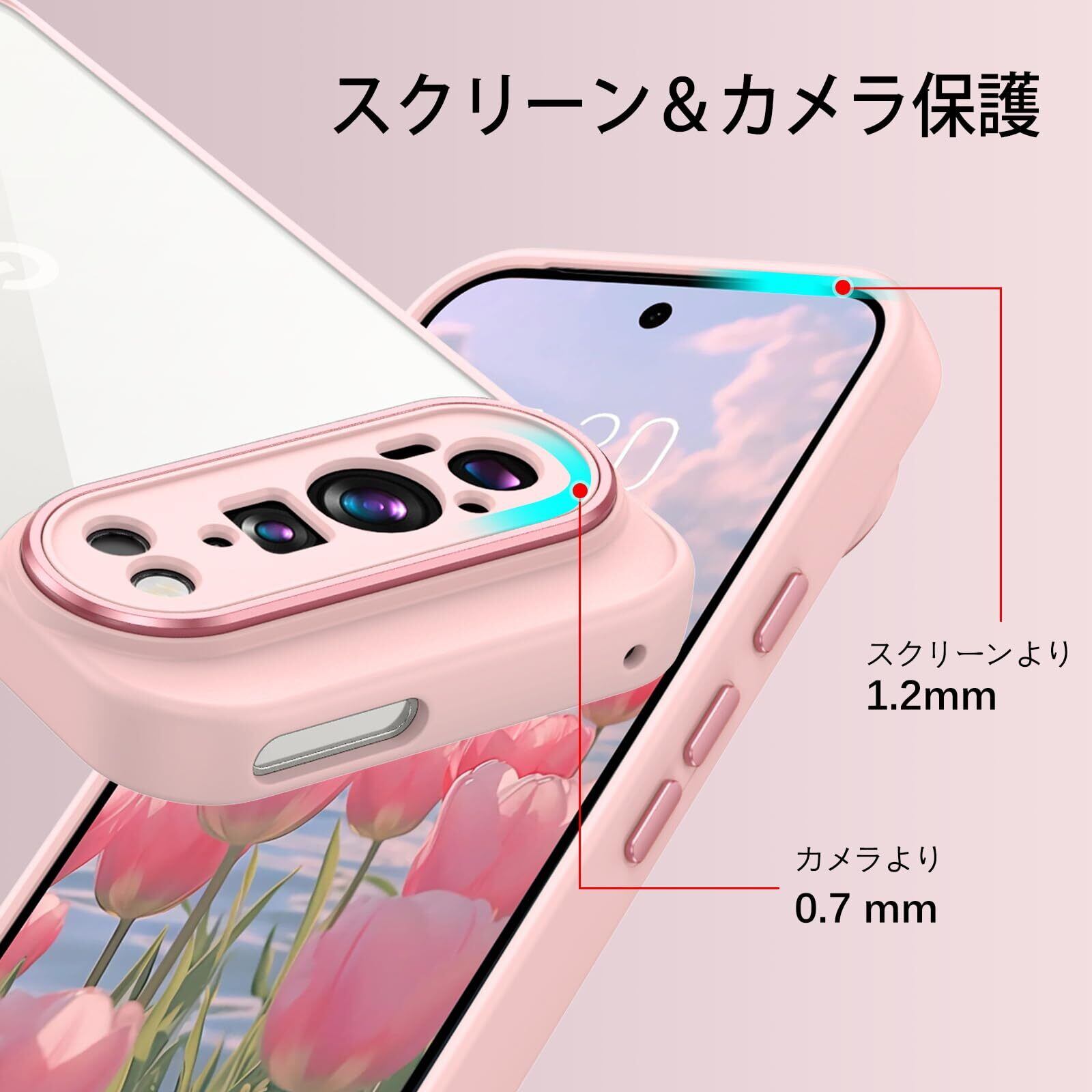 【新春セール】VENINGO Pixel 9 Pro ケース カバー クリアバック 耐衝撃 カメラポロテクター 薄型TPU+PC 軽量 擦り傷防止 レンズ保護 黄ばみ防止 滑り止め ストラップホール付き Google ピクセル 9Pro ケース スマホケース 6.3インチ ピンク
