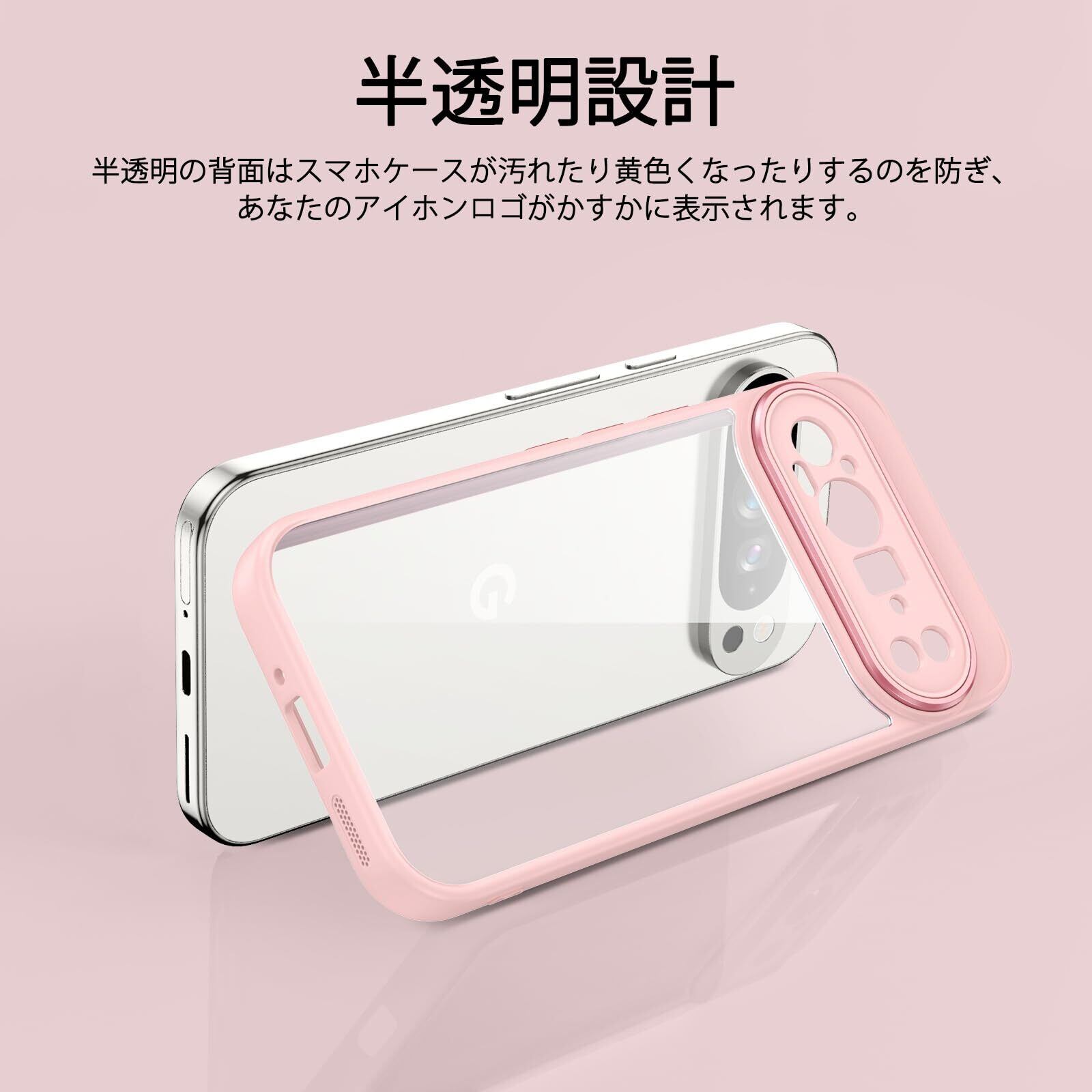 VENINGO Pixel 9 Pro ケース カバー クリアバック 耐衝撃 カメラポロテクター 薄型TPU+PC 軽量 擦り傷防止 レンズ保護 黄ばみ防止 滑り止め ストラップホール付き Google ピクセル 9Pro ケース スマホケース 6.3インチ ピンク