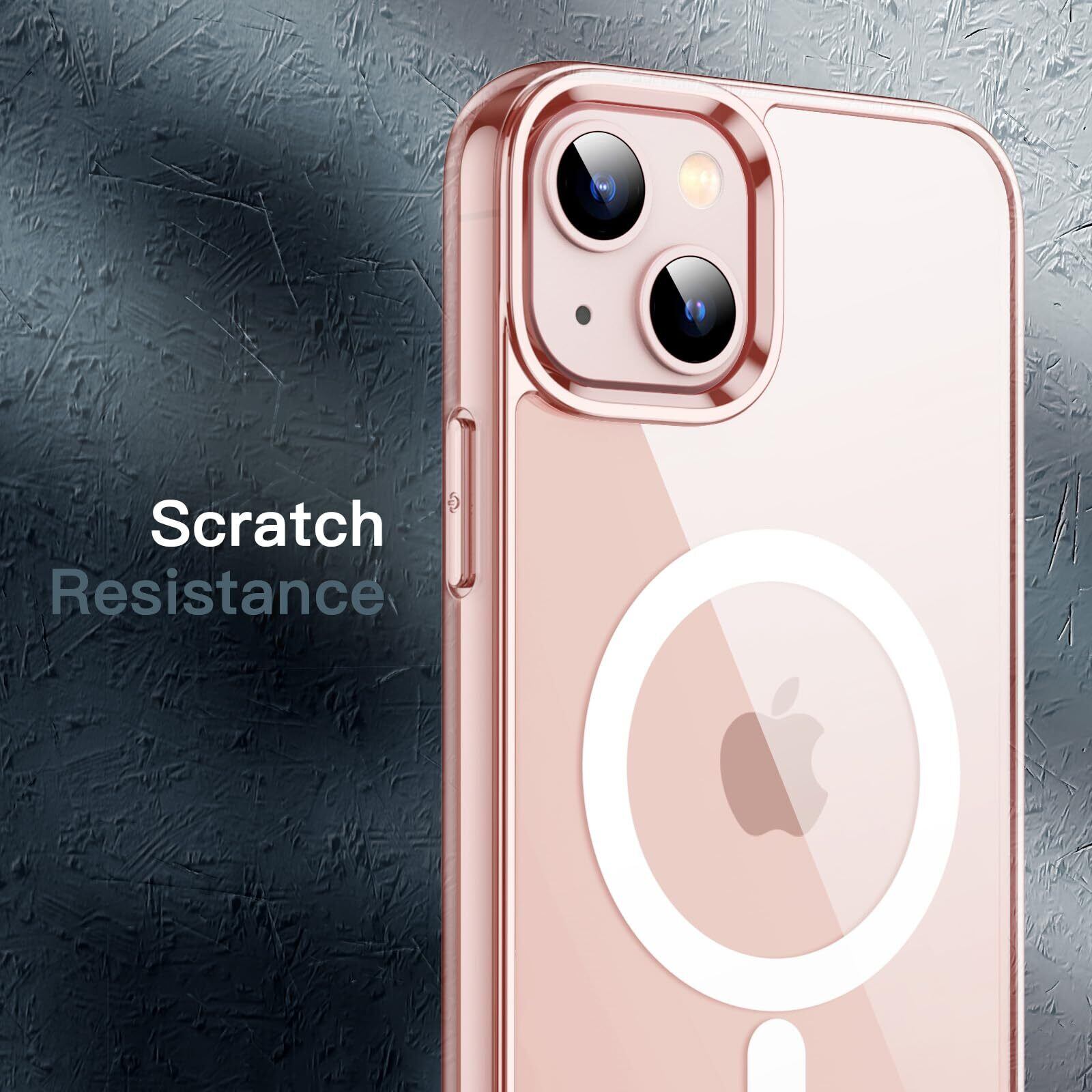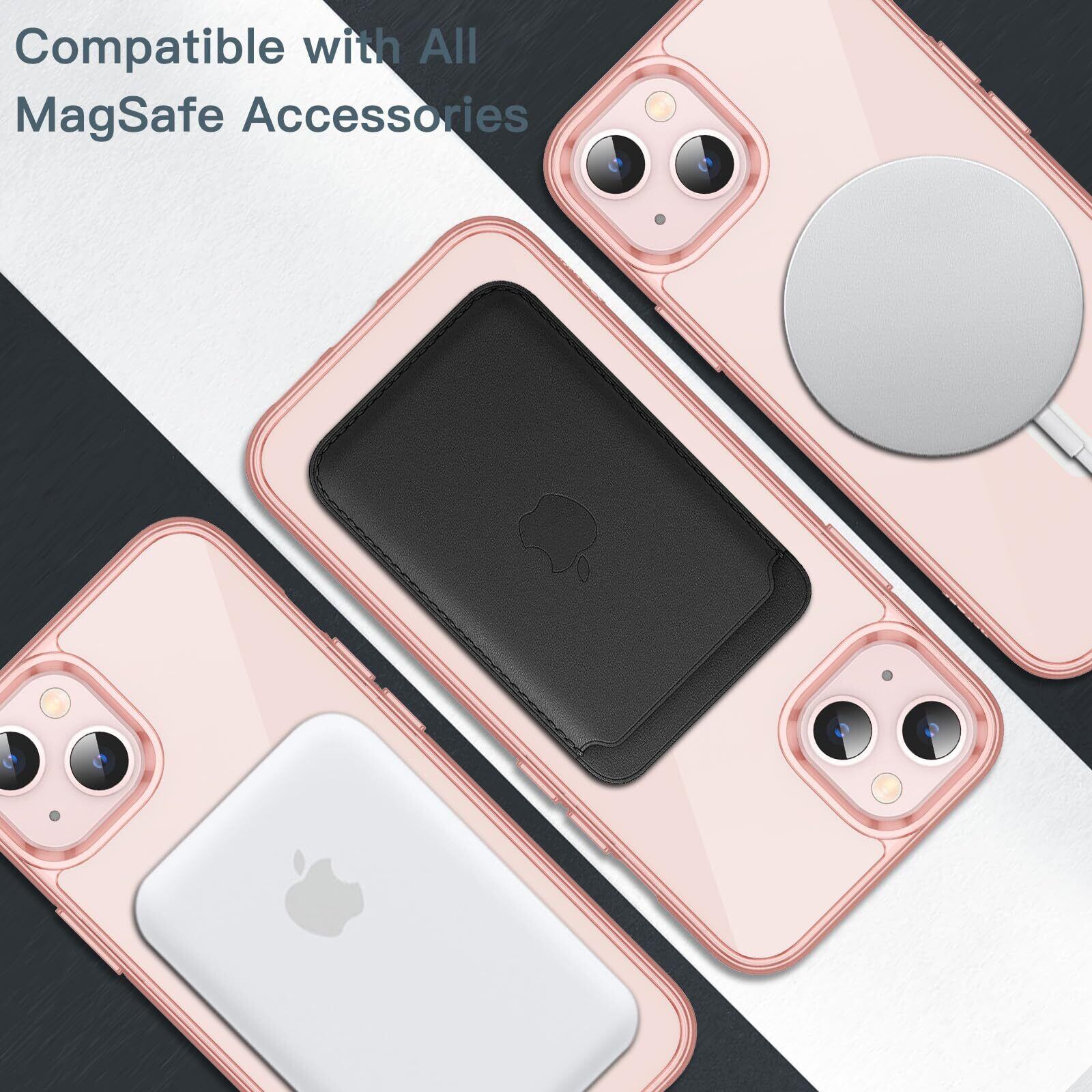 JETech iPhone 13 mini マグネット ケース(5.4インチ用) MagSafe ワイヤレス充電対応 衝撃吸収 バンパーカバー 傷つけ防止 透明バック (ピンク)