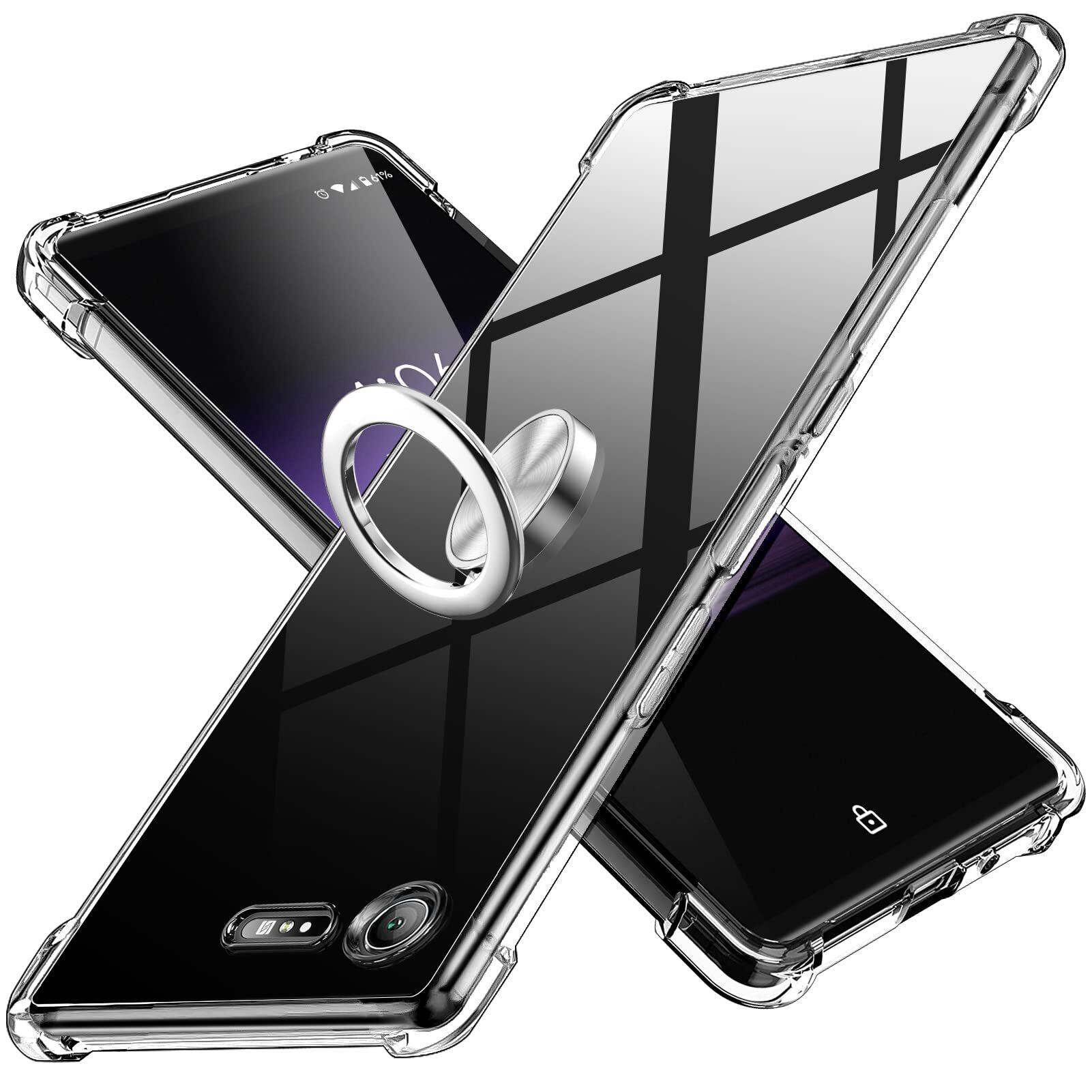 Xperia XZ1 ケース クリア リング 透明 TPU 耐衝撃 SO-01K SOV36 カバー 専用 ケースリング付き 指紋防止 360°回転 黄変防止 薄型 米軍MIL規格 車載ホルダー対応 携帯カバー TPU 擦り傷防止Q08001-04