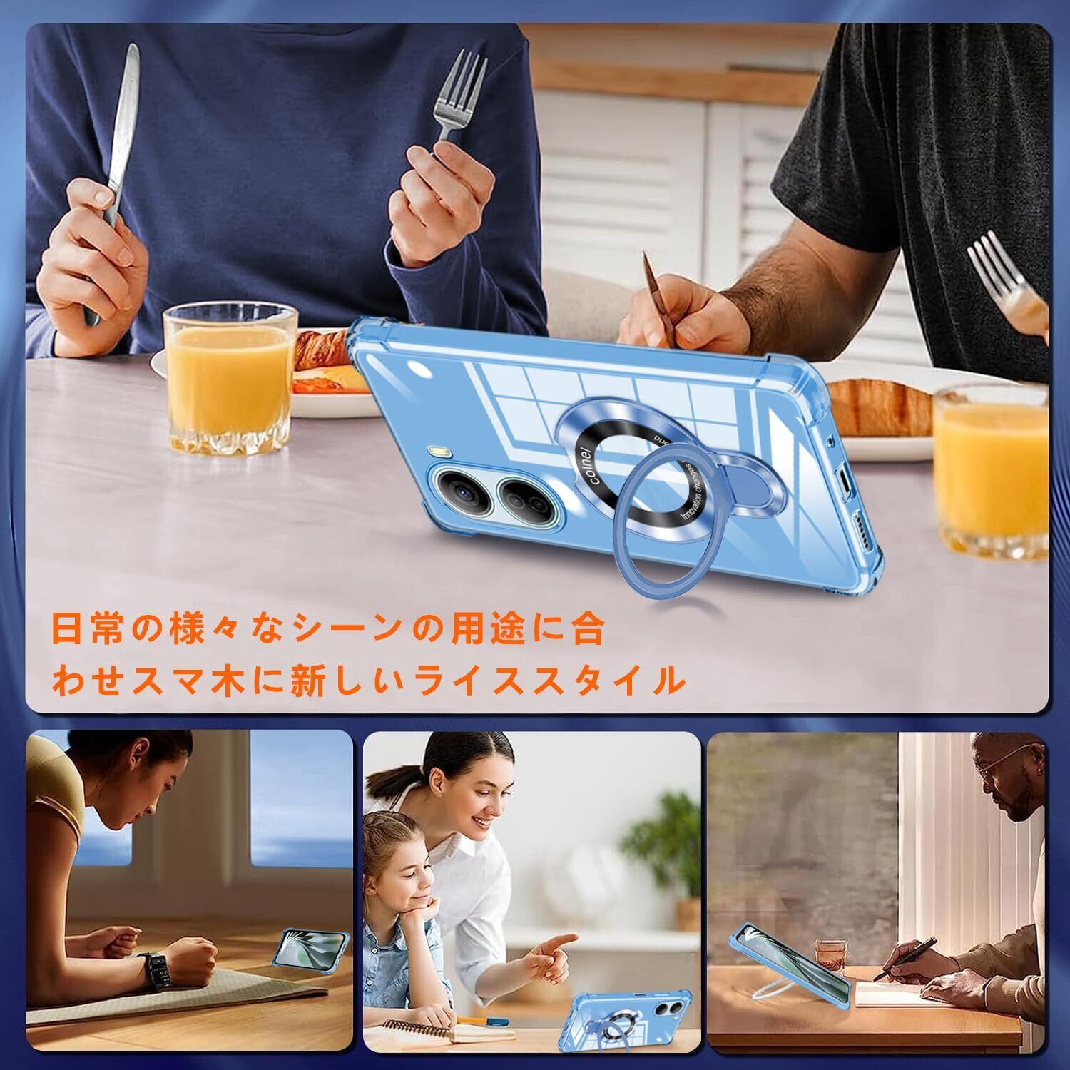 【スタンド機能】隠しスタンドの設計で、省スペース性に優れ、収納するときは水平的に置けできて、持ち運びの邪魔になりません。縦置きでも横置きでも安定して支えられ、40°~ 120°の間で多角度自由に調整できます。横向きでの動画鑑賞も楽しめ、縦向きでのビデオ通話も快適です。スタンド台を持ち運ぶ必要がなくなり、外出時にも便利です。手に取るだけでリングとしても使えるので、機能性にも優れています。