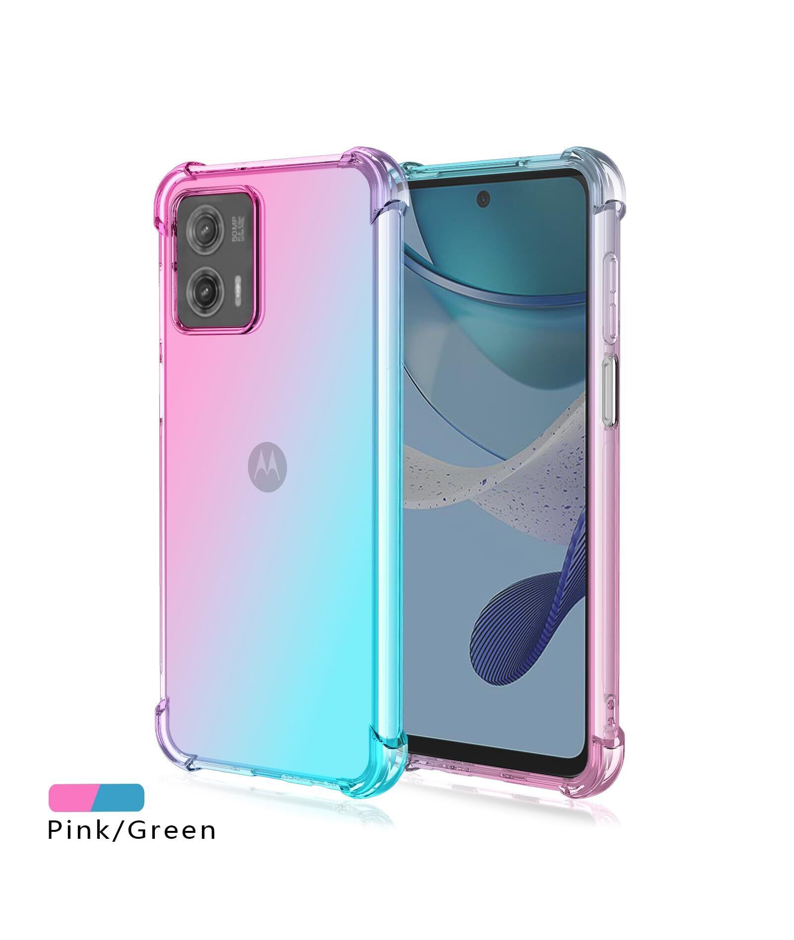 【特価セール】Motorola Moto G53 5G対応ケース グラデーションカバー Motorola Moto G53 5G スマホ保護カバー 耐衝撃 Moto G53 5G用クリアTPU ケース カバー Moto G53 5Gソフト TPU ケース ピンク&グリーン