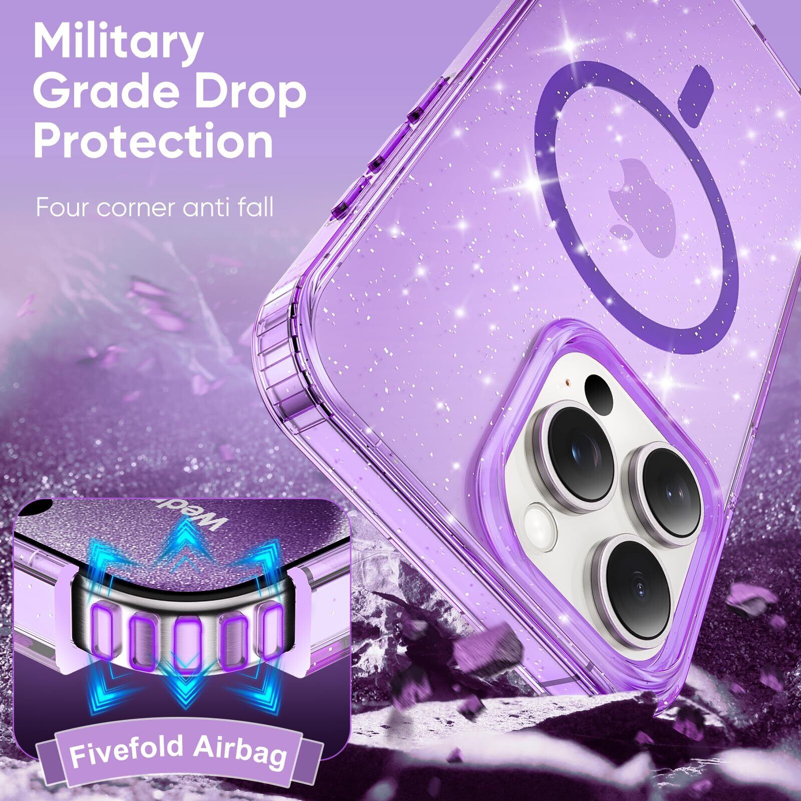 【新春セール】R-fun クリスタルグリッター マグネットケース iPhone 12/12 Pro ケース [黄ばみ防止] [軍事グレードの保護] iPhone 12 Pro (6.1 インチ) 対応 パープル
