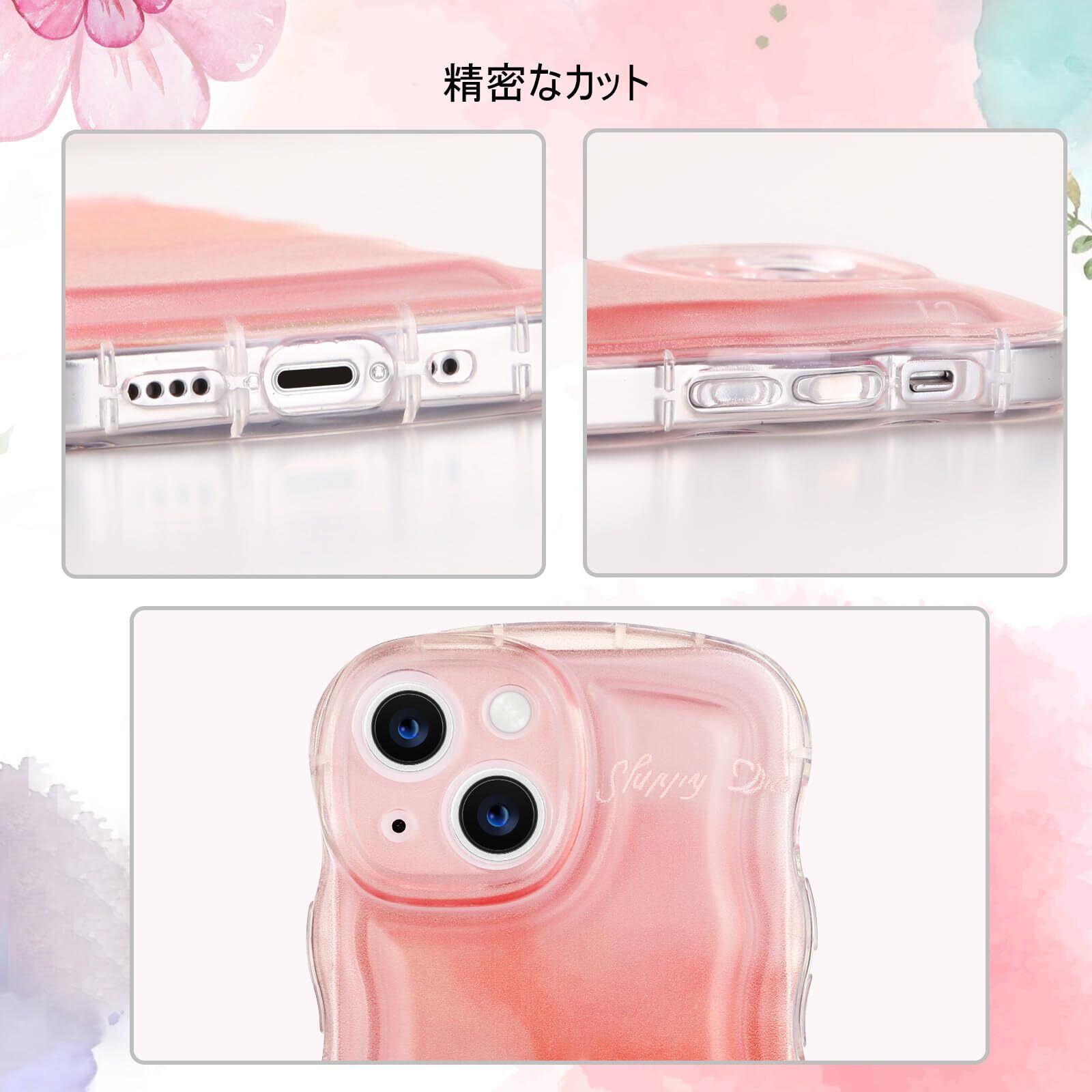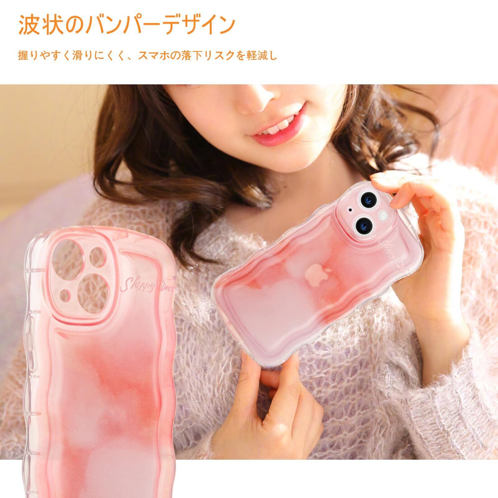 DUEDUE iPhone 13 mini ケース 波状のバンパー ピンクハロー染色 アイフォン13 mini ケース かわいい スマホケース レンズ保護 おしゃれ 指紋防止 一体型 薄型 ほんのり透け感 ワイヤレス充電 TPUケース 耐衝撃 握りやすい
