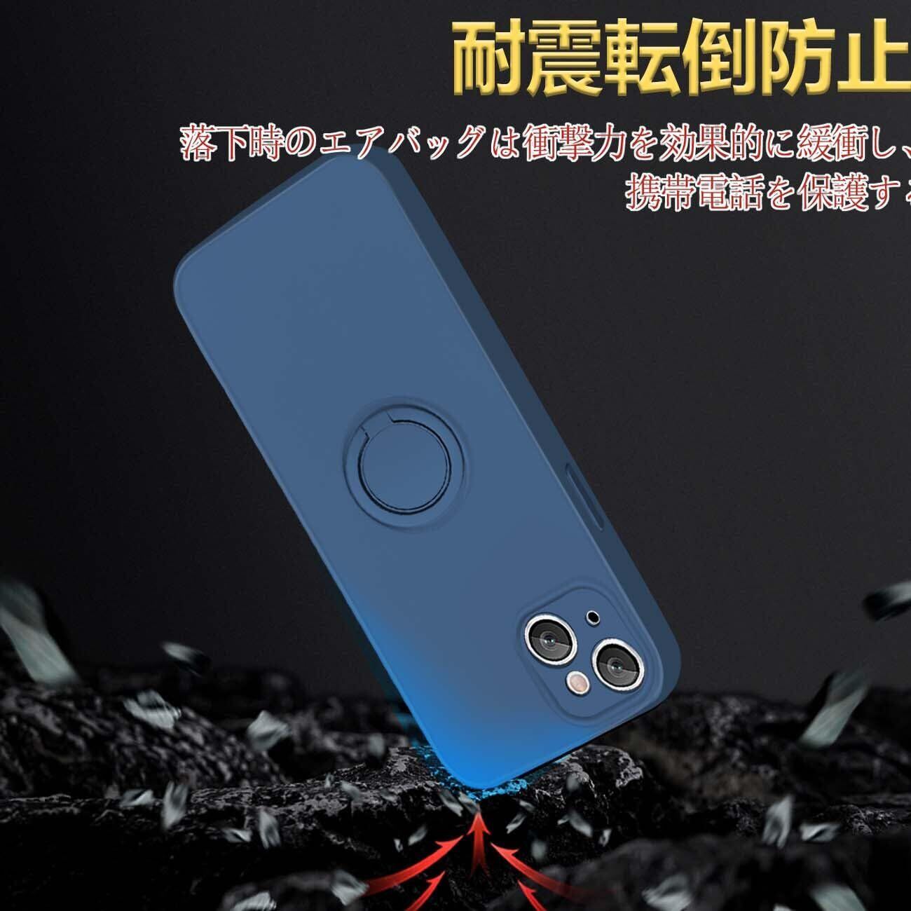 【新春セール】MiaoKeDa iPhone 13 mini ケース シリコーン リング 耐衝撃 スマホケース いpほね 13 mini リング付き TPU 車載ホルダー ストラップホール付き メッキ ブルー