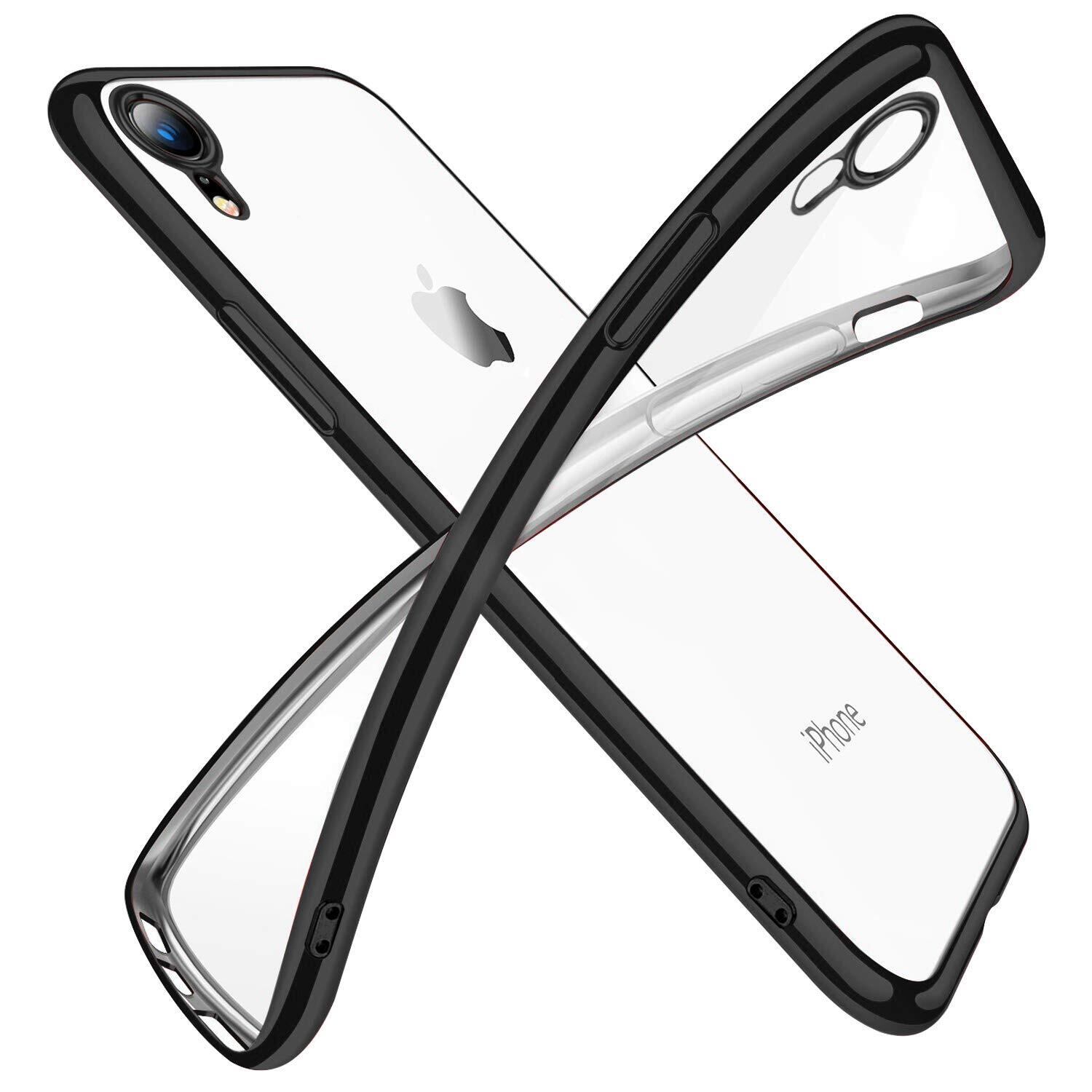 【新着商品】iPhone XR ケース クリア 透明 tpu シリコン メッキ加工 スリム 薄型 6.1インチ スマホケース 耐衝撃 黄変防止 一体型 人気 携帯カバー ブラック