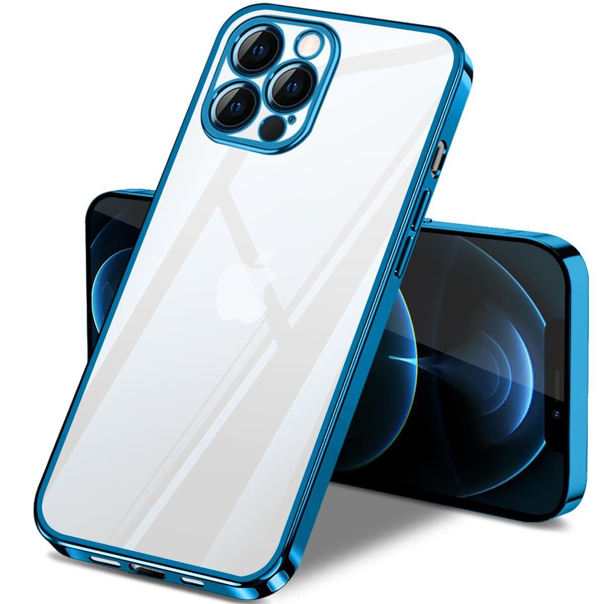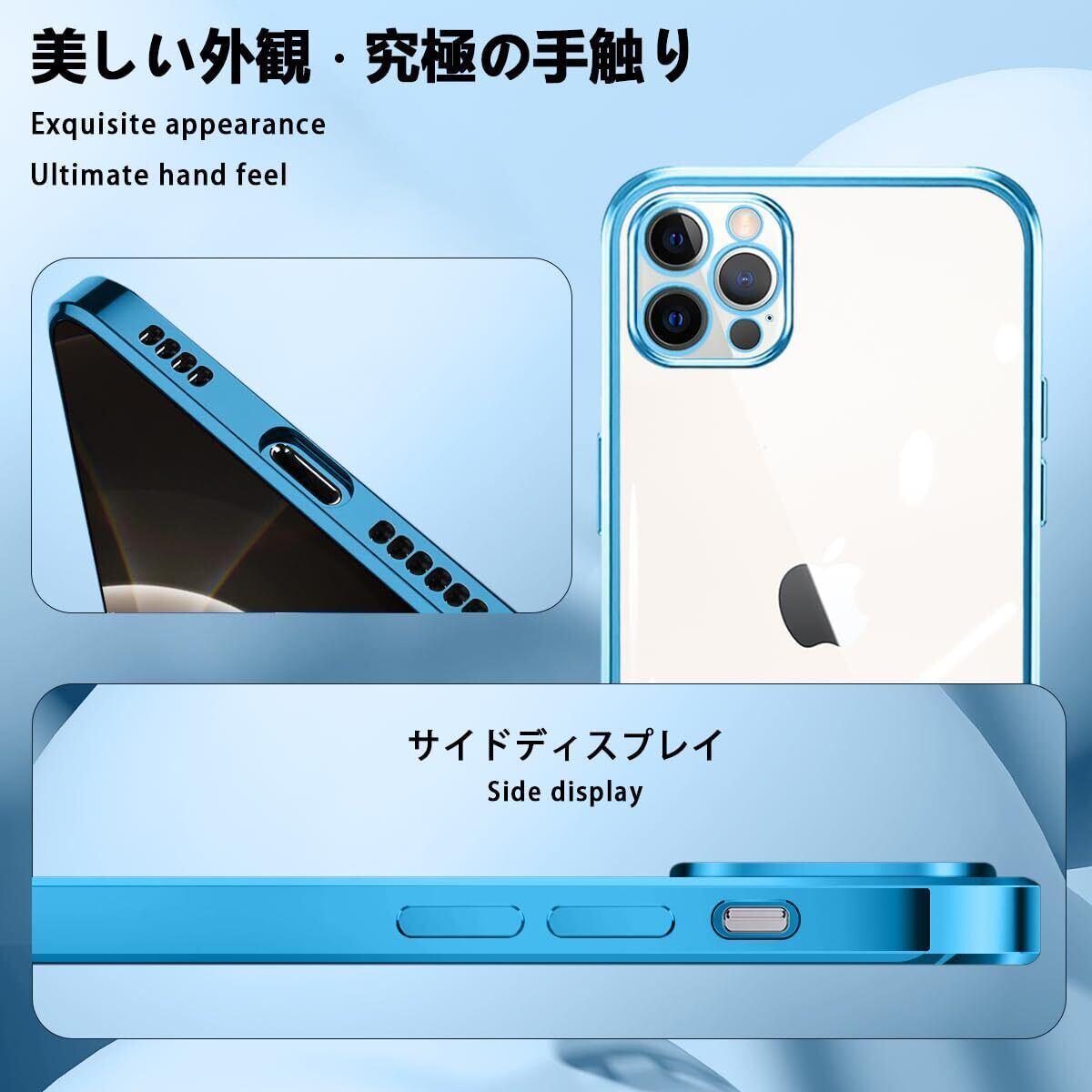 JOUMIN YAO iPhone 12 Pro Max ケース クリア TPU 黄ばみにくい 韓国 カバー アイフォン12ProMax ソフト 透明 スマホケース TPU 薄型 耐衝撃 軽量 メッキ加工 携帯カバー ストラップホール付き 落下防止 擦り傷防止 6.7インチ(ブルー)