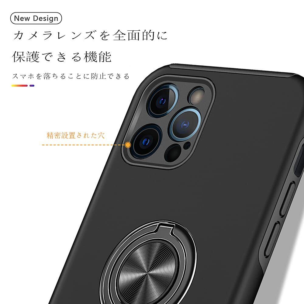 Cakublse iPhone 12 Pro Max 用 ケース 强化 ガラス フィルム リング スタンド 付き 耐衝撃 いphone12 Pro Max 対応 カバー リング付きケース 耐衝撃ケース ブラック