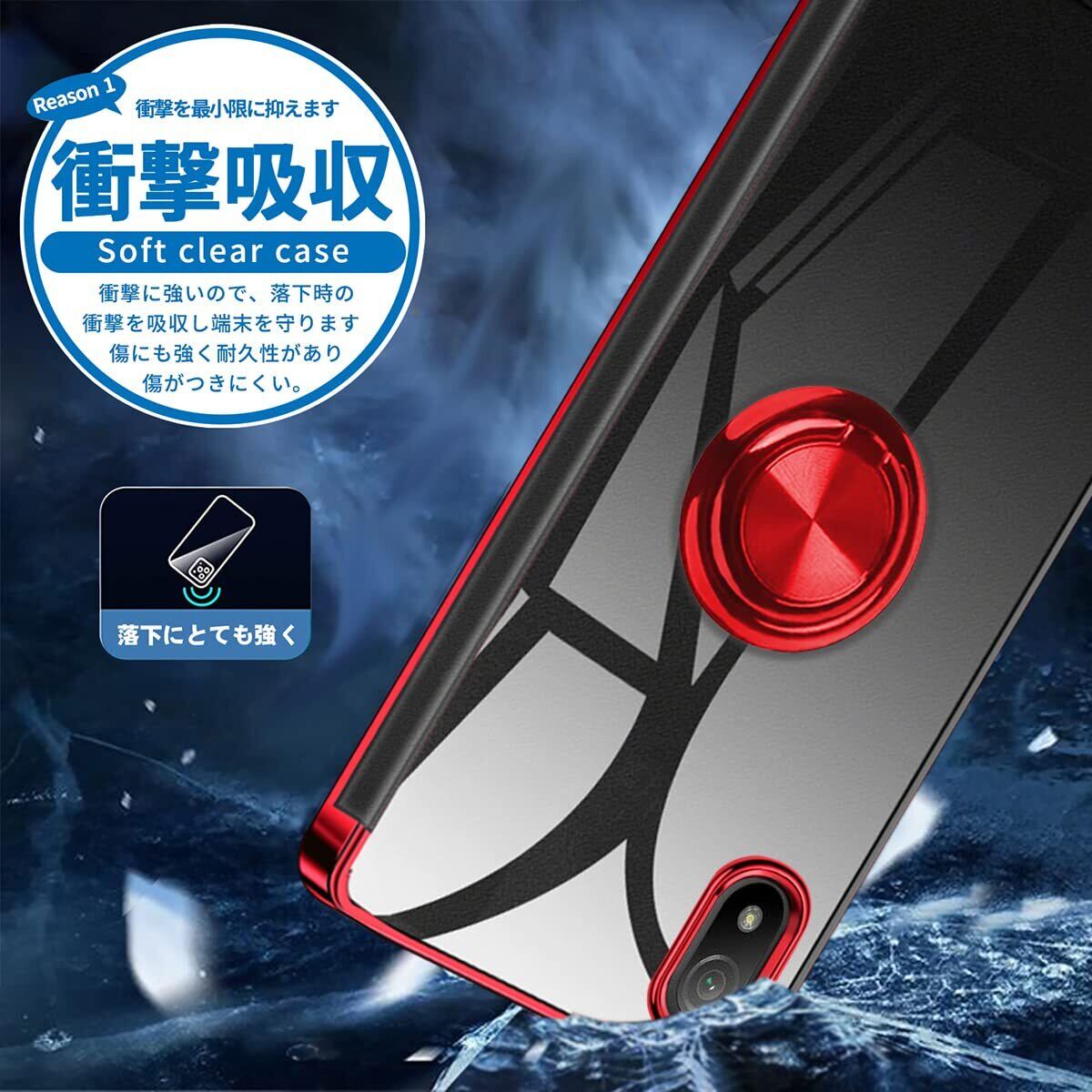 Xperia ACE III ケース リング クリア SO-53C SOG08 カバー エクスペリアACEIIIケース TPU 耐衝撃 メッキ加工 シリコン 携帯カバー スタンド機能 ストラップホール付き 一体型 スマホ保護カバー レッド