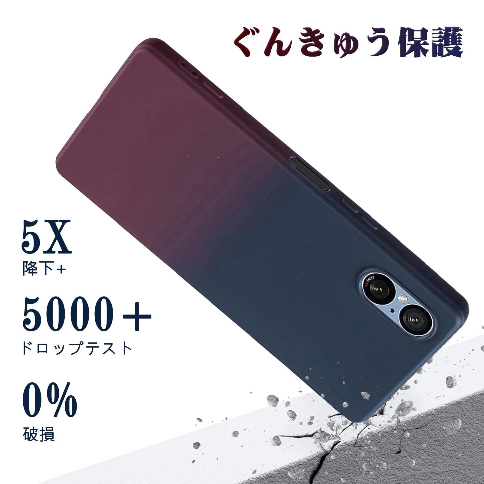 【新春セール】【 Agaiy 】Xperia 5 V/SO-53D/SOG12 対応 ケース グラデーションカバー 薄型 柔軟 軽量 ソニー エクスペリア5v スマホ保護カバー マット質感 全面保護 耐衝撃 TPU ケース 滑り止め 落下防止 xperia 5v カバー (ブルーベリー/チェリー)