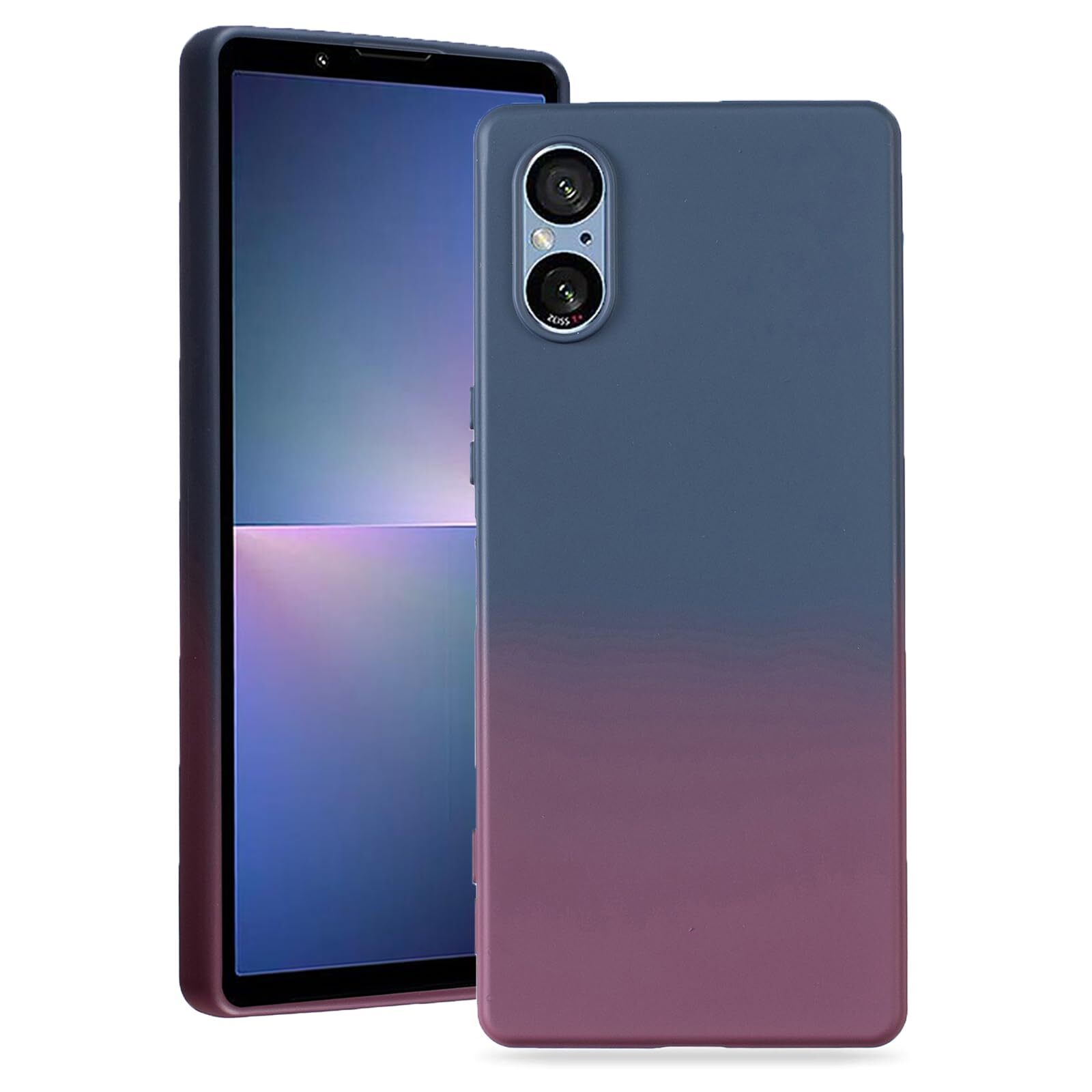 【 Agaiy 】Xperia 5 V/SO-53D/SOG12 対応 ケース グラデーションカバー 薄型 柔軟 軽量 ソニー エクスペリア5v スマホ保護カバー マット質感 全面保護 耐衝撃 TPU ケース 滑り止め 落下防止 xperia 5v カバー (ブルーベリー/チェリー)