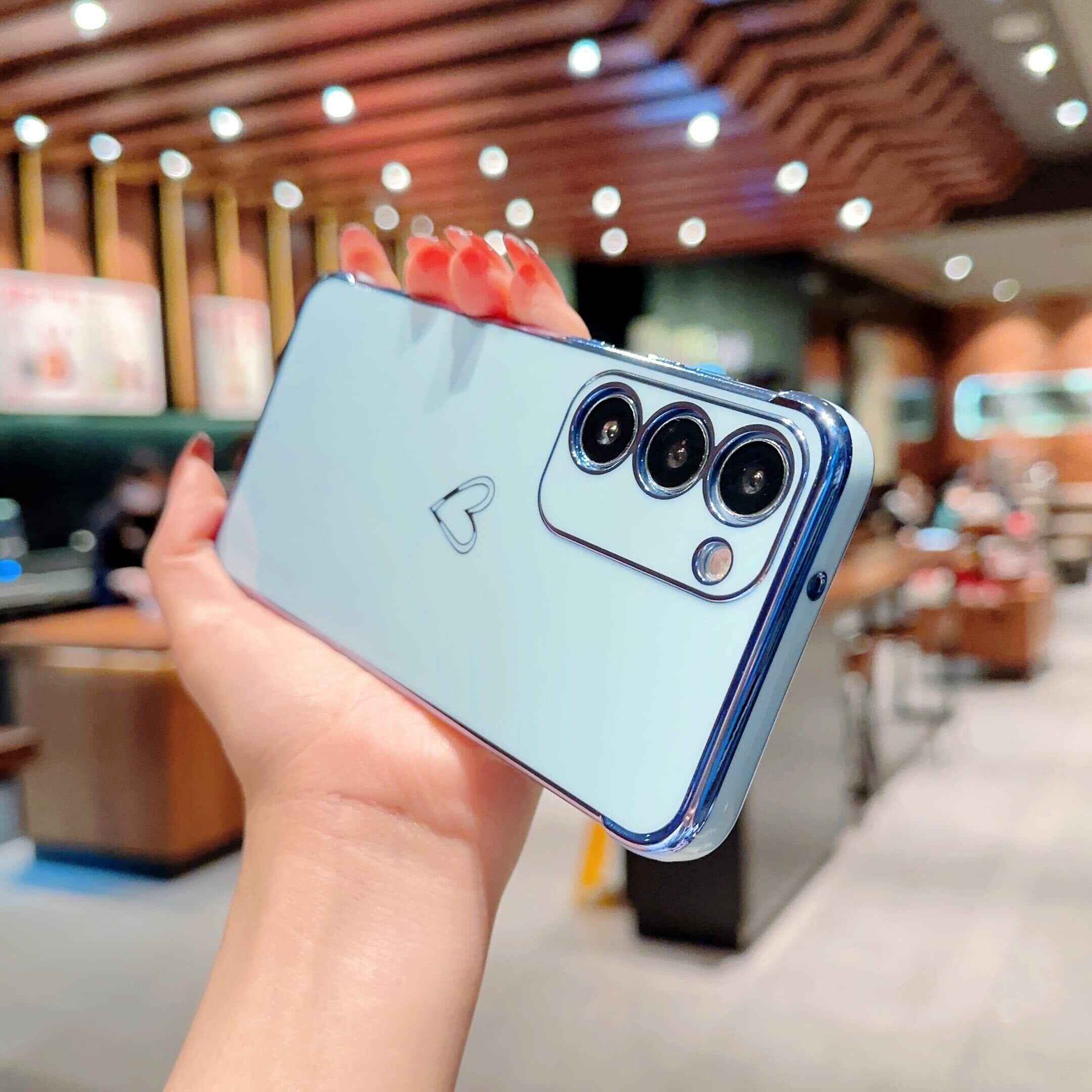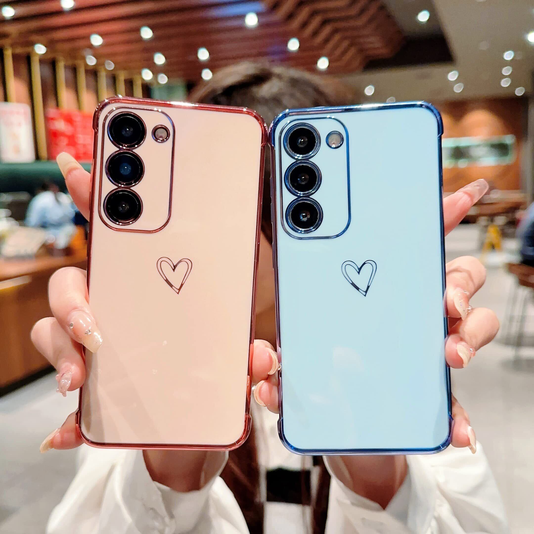 QLTYPRI Galaxy S23 FE ケース ギャラクシーS23 FE TPU カバー ハート模様 おしゃれ 韓国 可愛い 女性 人気 薄型 軽量 耐衝撃 スマホケース レンズ保護 落下防止 ワイヤレス充電対応 ストラップホール付 - グレーブルー #2