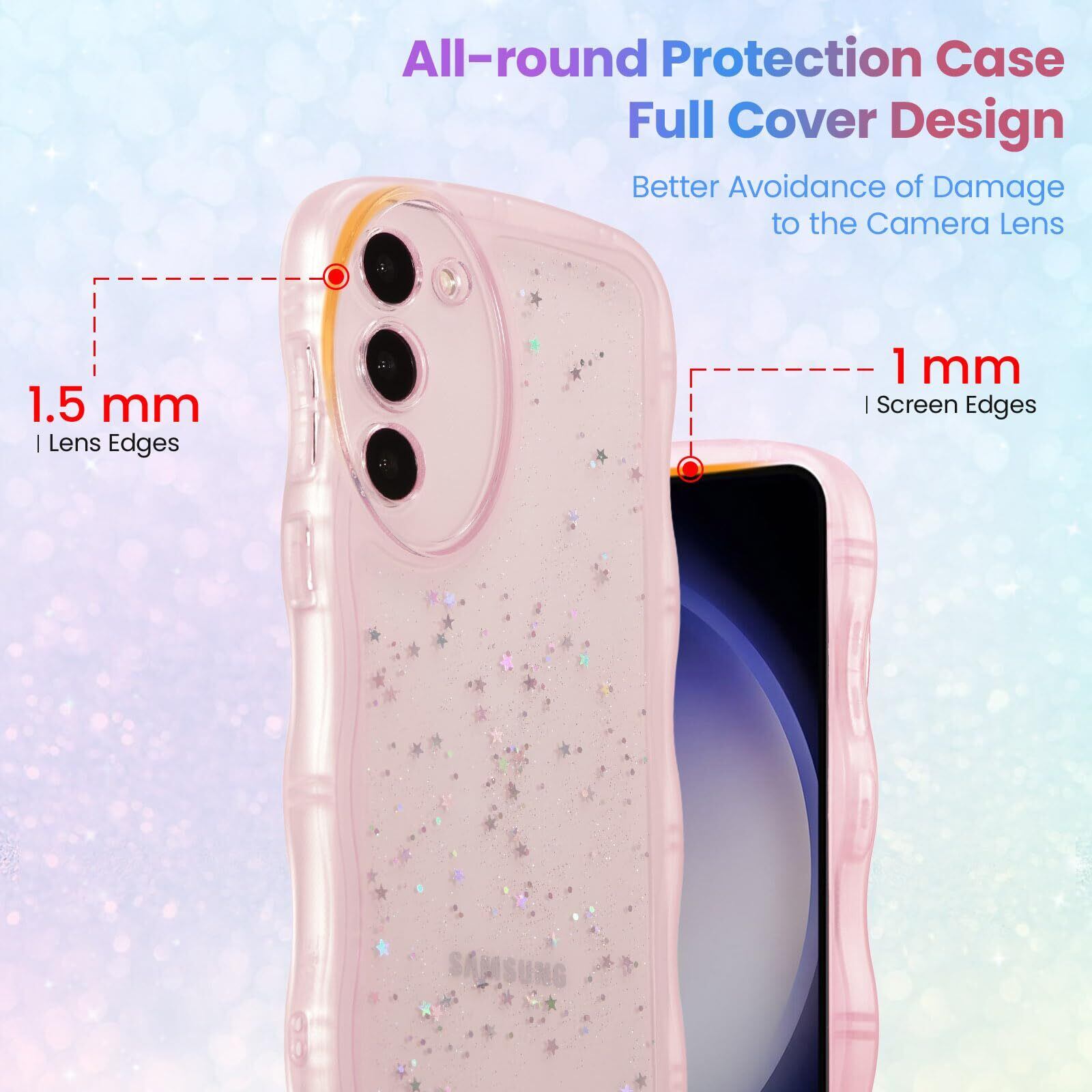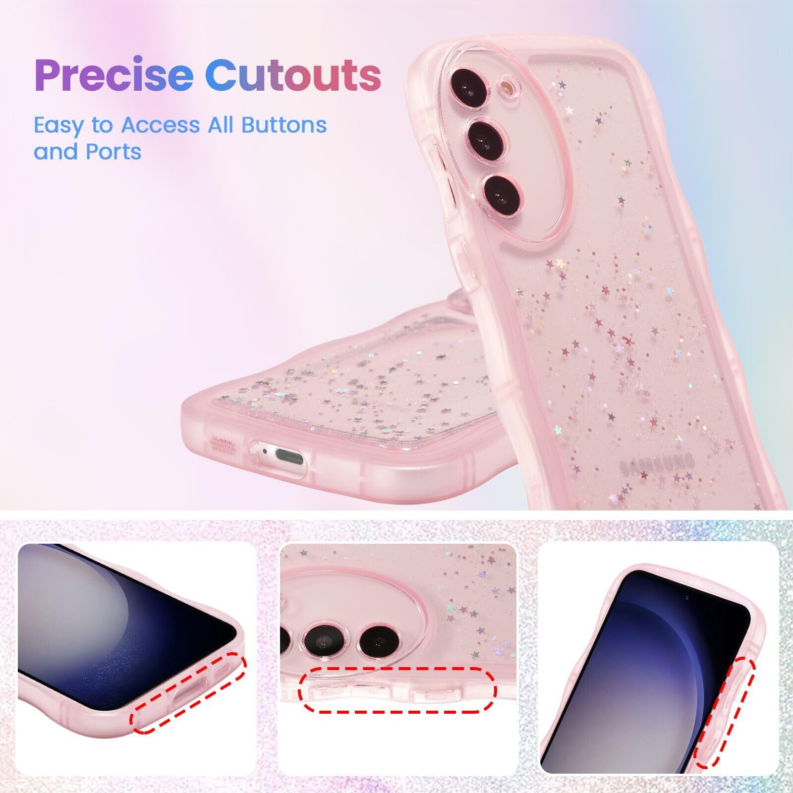 QLTYPRI Galaxy S23 FE ケース クリア TPU カバー ウェーブ おしゃれ 韓国 可愛い ウェーブ グリッター 透明 薄型 軽量 耐衝撃 滑り止め スマホケース ワイヤレス充電対応 ストラップホール付き ギャラクシーS23 FE ケース 6.4インチ 対応 - ピンク