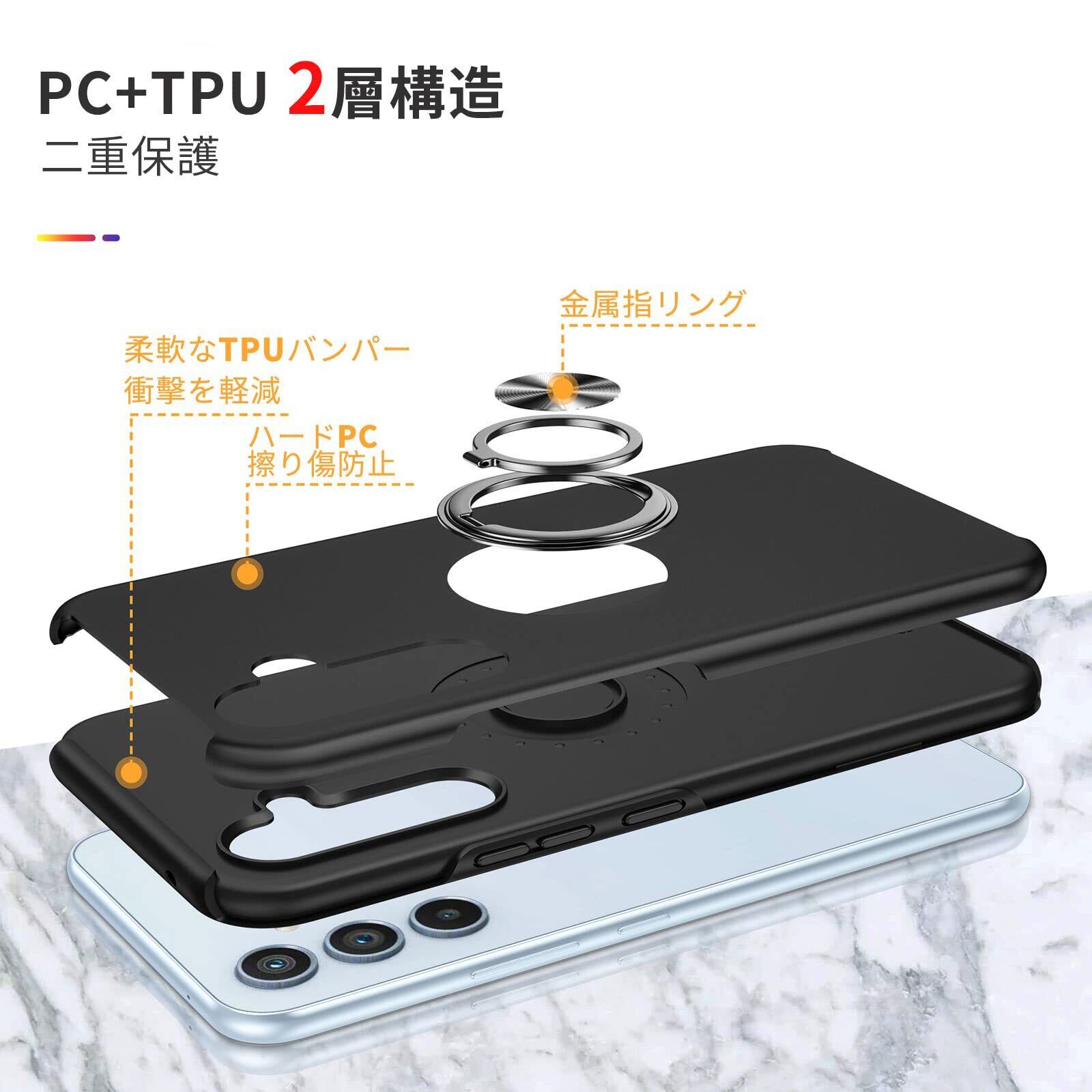 Galaxy S23 FE ケース リング 耐衝撃 TPU+PC バンパーケース ギャラクシーS23 FE SCG24 スマホケース 頑丈 スタンド機能 車載ホルダー対応 全面保護 落下防止 防塵 指紋防止 傷防止 衝撃吸収 Samsung Galaxy S23 FE 用 携帯カバー(ブラック)