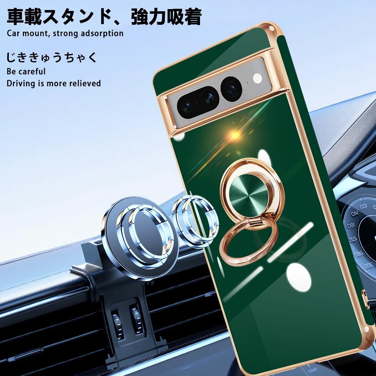 Google Pixel 7 Pro ケース リング付き 耐衝撃 グーグル ピクセル 7pro スマホケース 保護カバー メッキ加工 360回転車載ホルダー スタンド機能 tpu 薄型 ストラップホール付き 黄変防止 (グリーン)