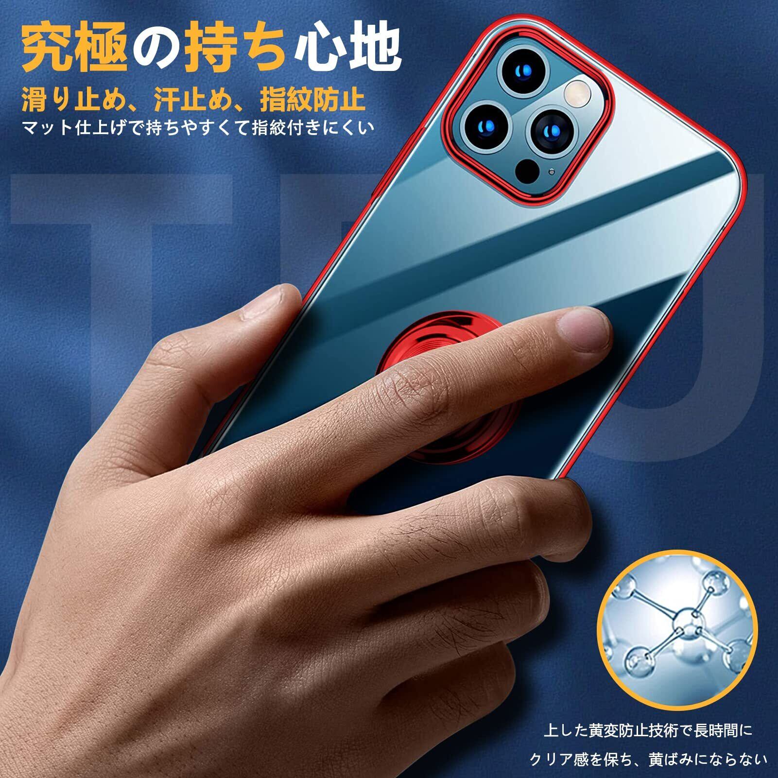 iPhone 12 Mini 用 ケース リング付き クリア 透明 TPU 耐衝撃 車載ホルダー対応 スタンド機能 防塵 薄型 軽量 落下防止 一体型 変形防止 全面保護カバー アイフォン 12 Mini 用 ケース 赤 MJJ-1039-11-2