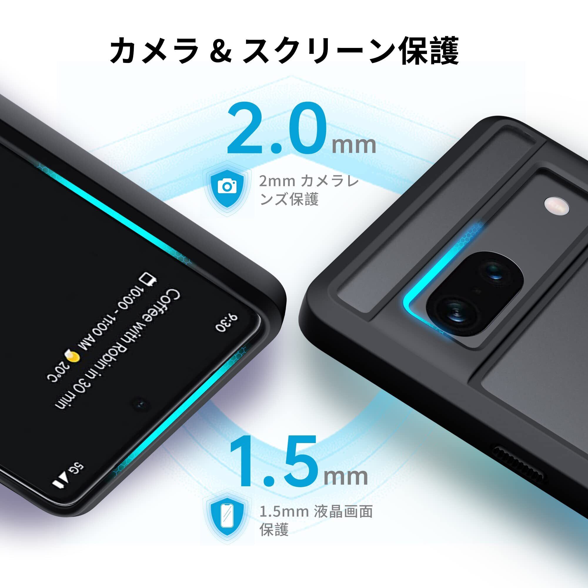 グーグルピクセル7a ケースは1.5mmのスクリーンフレームと2mmのカメラとスクリーンを傷や落下から保護します。