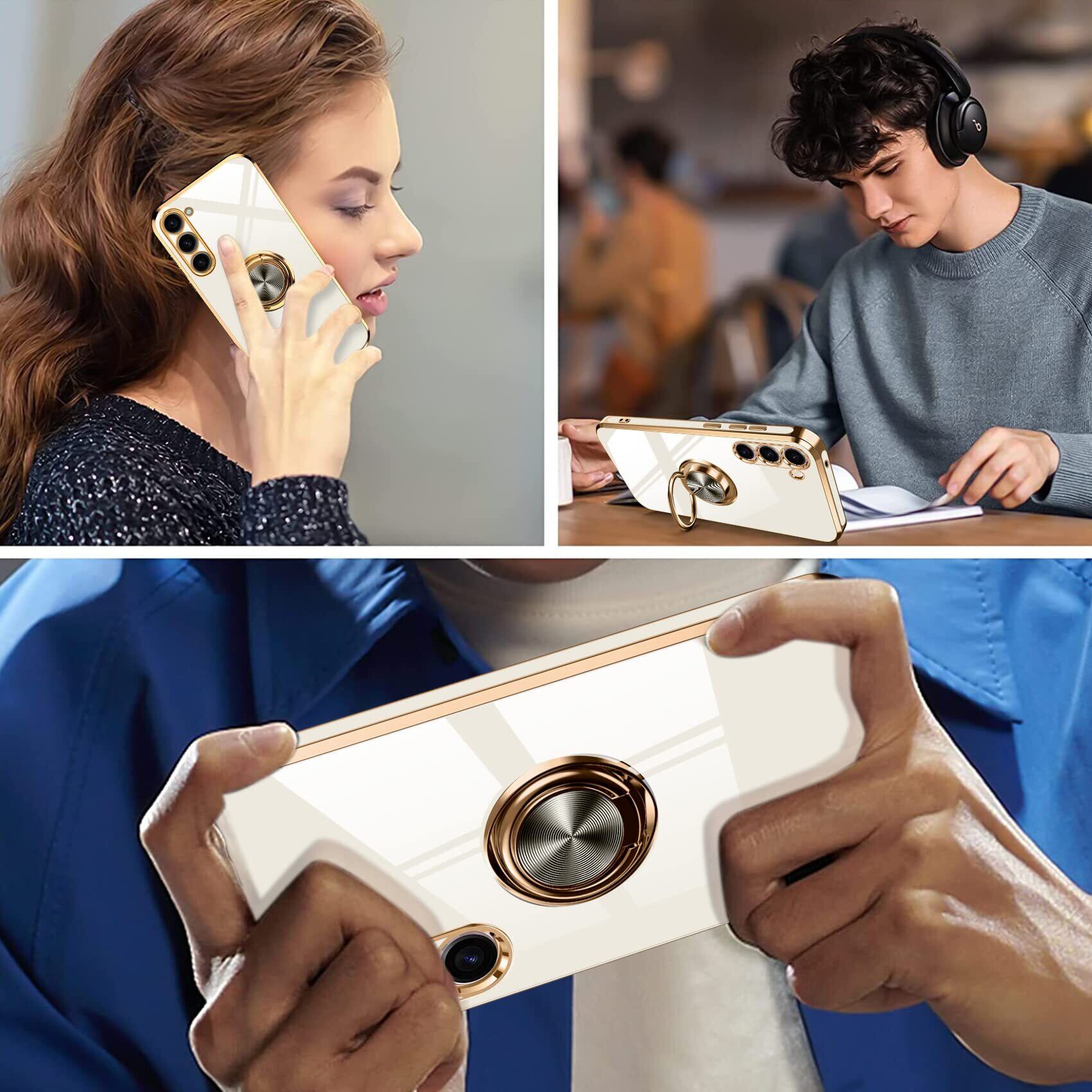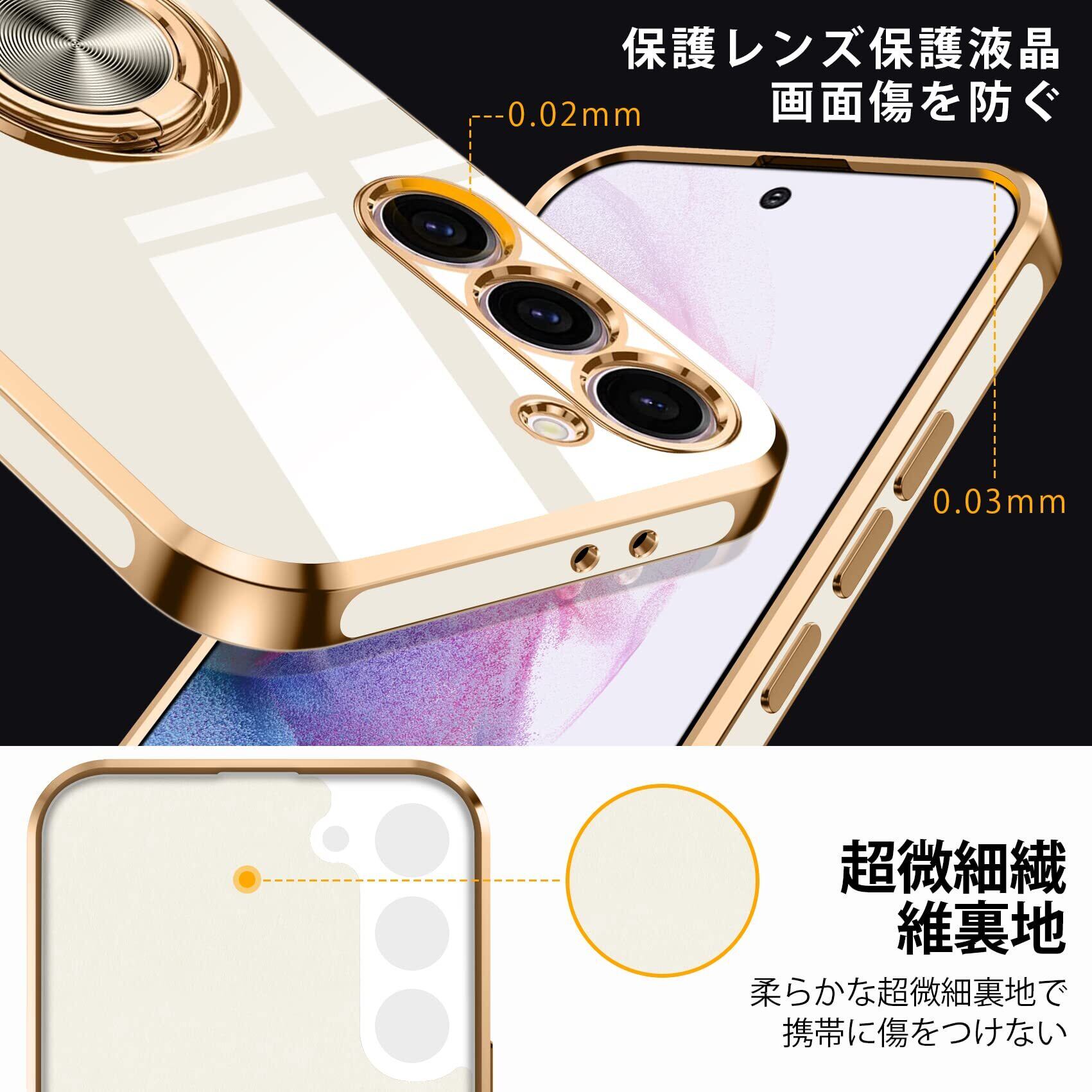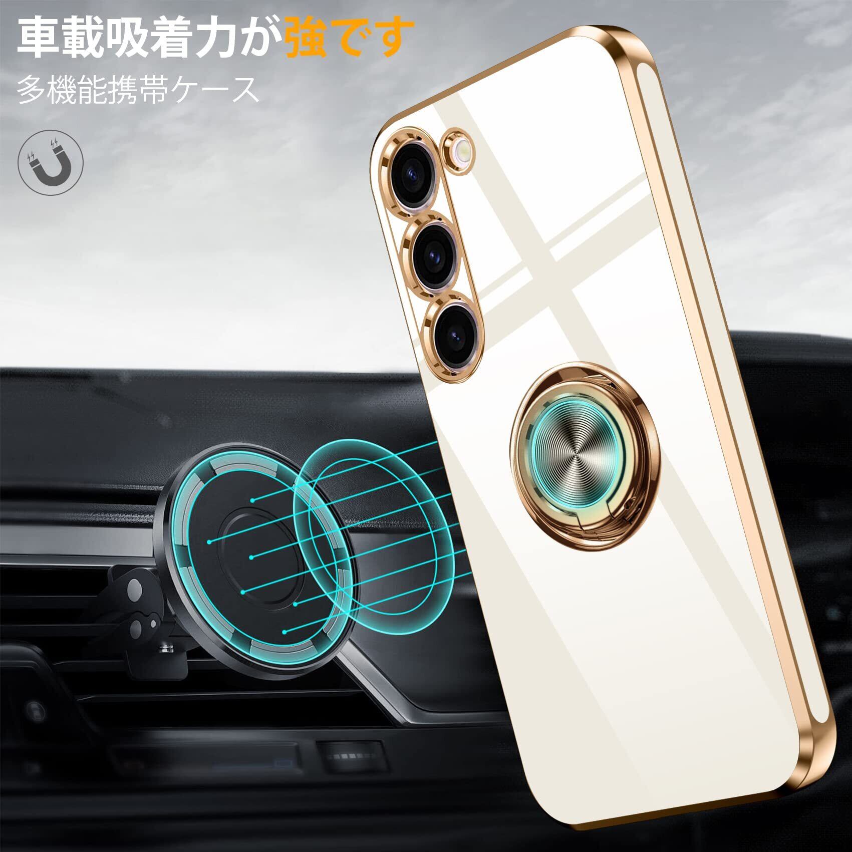 Galaxy S23 Ultra 用ケース リング 耐衝撃 レンズ保護 軽量 Samsung ギャラクシー S23 Ultra 用/SC-52D / SCG20 カバー メッキ加工 ソフトケース スタンド機能 車載ホルダー 対応 サラサラ触り心地 6.8インチ 白 MZ85-50