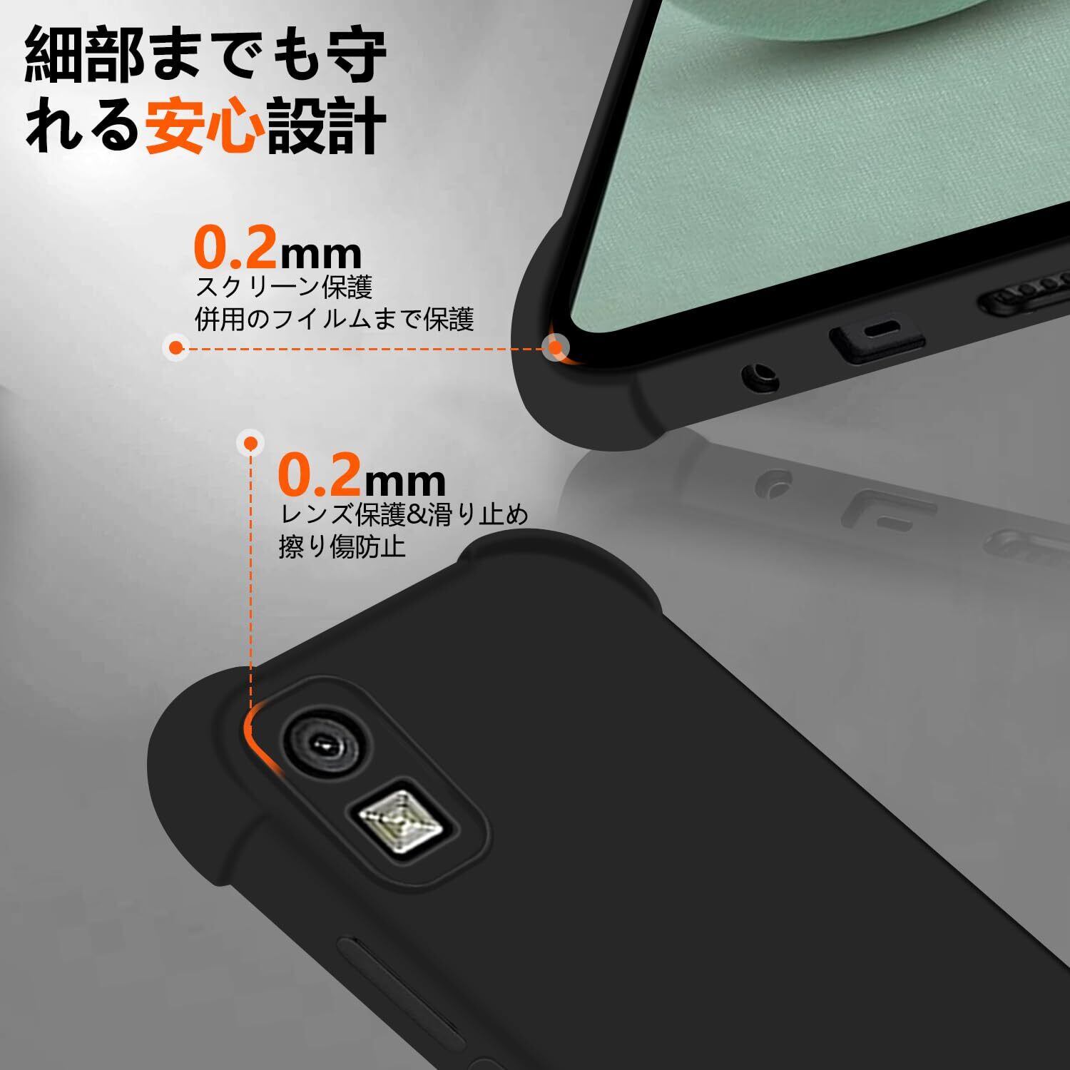 AQUOS Wish 3 ケース TPU シリコン ブラック (四隅がエアクッション構造 カバー ケース) 薄型 SH-53D A302SH ケース カメラ保護 黄変防止 Qi充電 スリム ソフト カバー 耐衝撃 衝撃 吸収 指紋 防止 コーティング リキッドシリコン アクオスwish 3 スマホケース