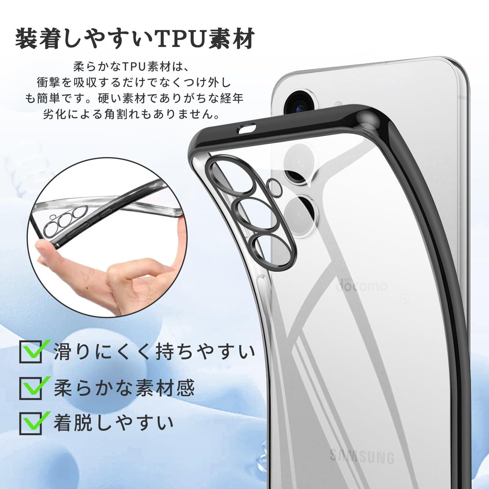Samsung Galaxy S24 ケース クリア SC-51E カバー 透明 TPU シリコン 薄型 耐衝撃 軽量 ソフトカバー ストラップホール ギャラクシー S24 スマホケース (ブラック)