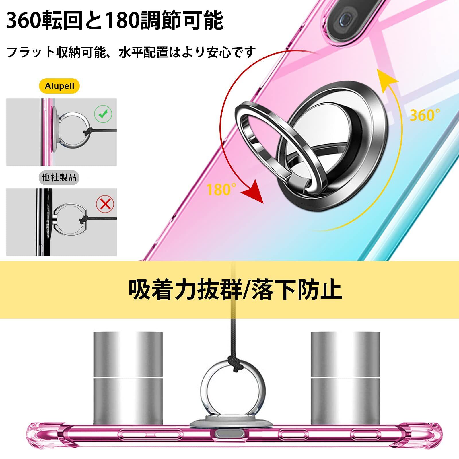 【360°回転】ブラケットは360°回転できます、垂直画面で小説を読むことができます、または、画面全体でビデオを見る。一指着る式で、指がリングに通り抜け、片手で携帯を操作でき、落下防止します。