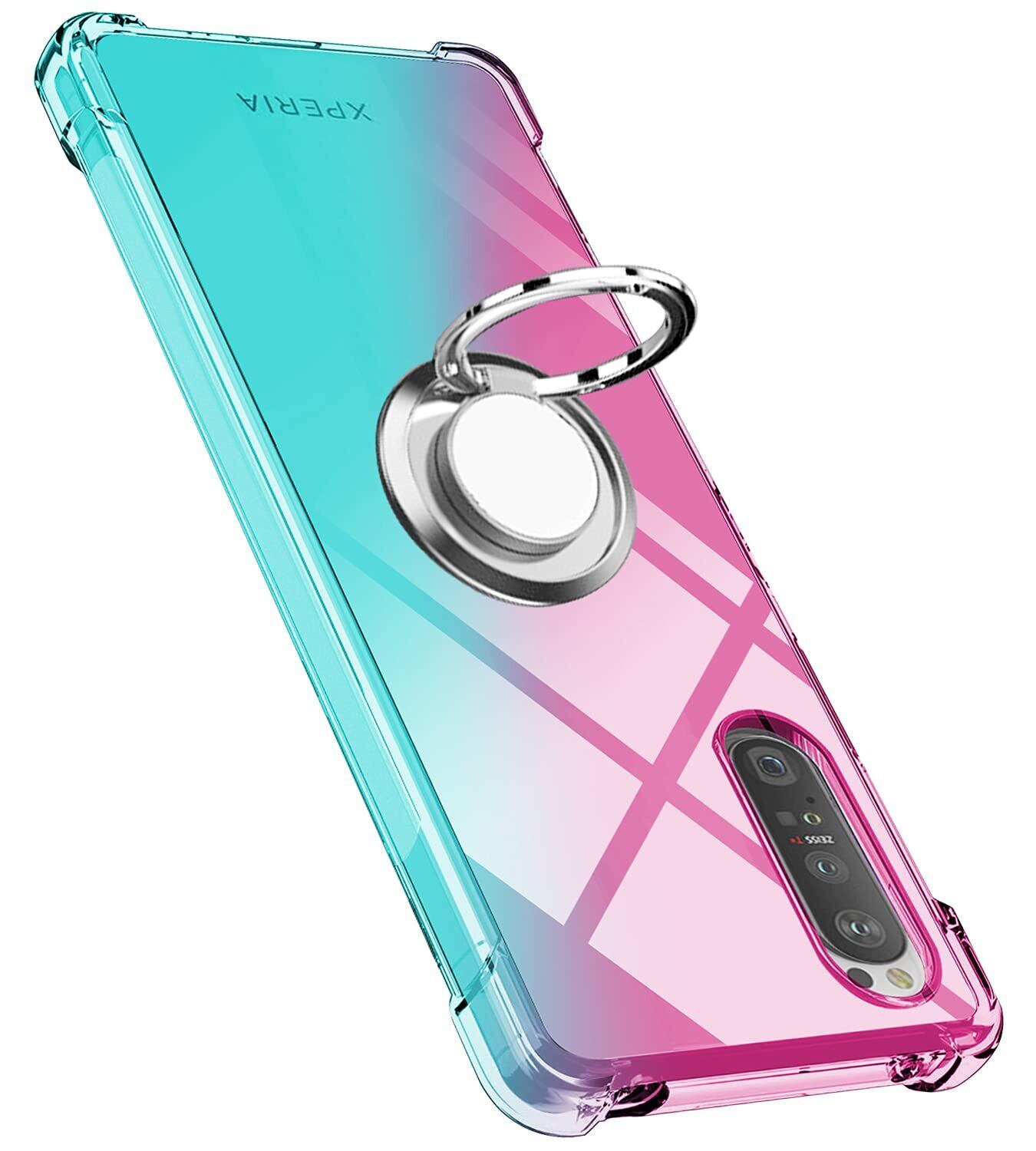 Xperia 1 IV ケース リング クリア TPU シリコン リング付き 薄型 SO-51C カバー SOG06 ケース グラデーション色 ケース 軽量シリコン 耐衝撃 指紋防止 360回転 車載ホルダー対応 一体型 人気 携帯カバー (ピンクグリーン)