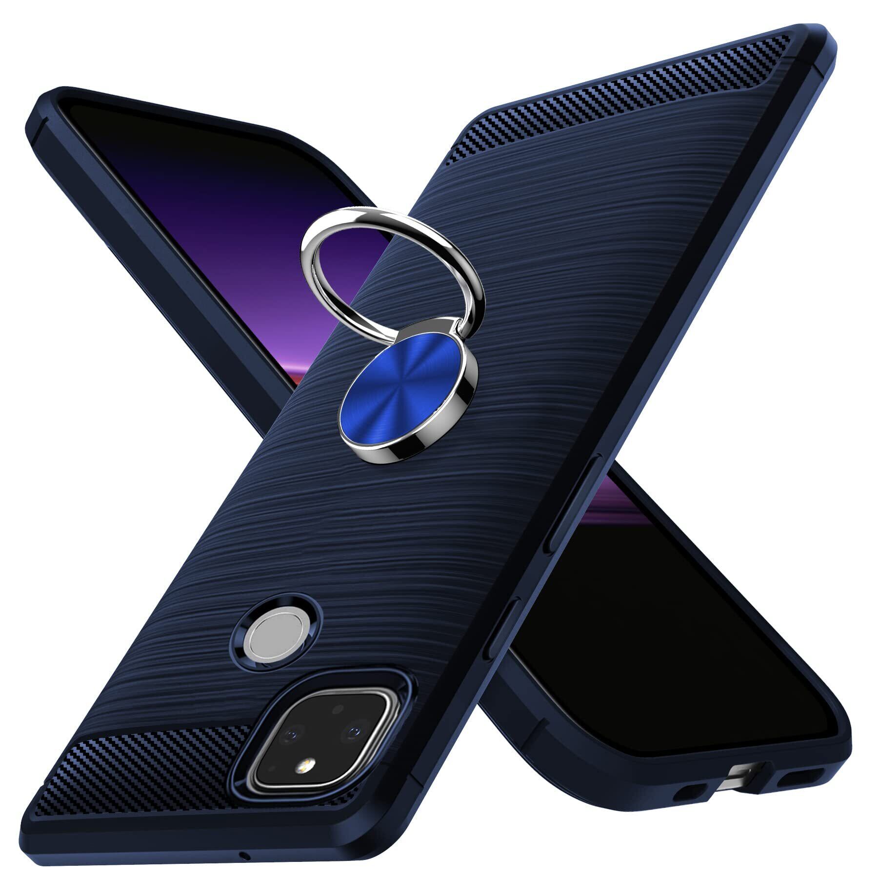 Google Pixel 4a 5G ケースリング付き耐衝撃 Pixel 4a 5Gカバーシリコン tpu スマホケースリング 薄型 柔軟 衝撃吸収 米軍MIL規格取得 保護カバー 黄変防止 指紋防止 軽量 耐久性 専用カバー ブルー 青R0105-56