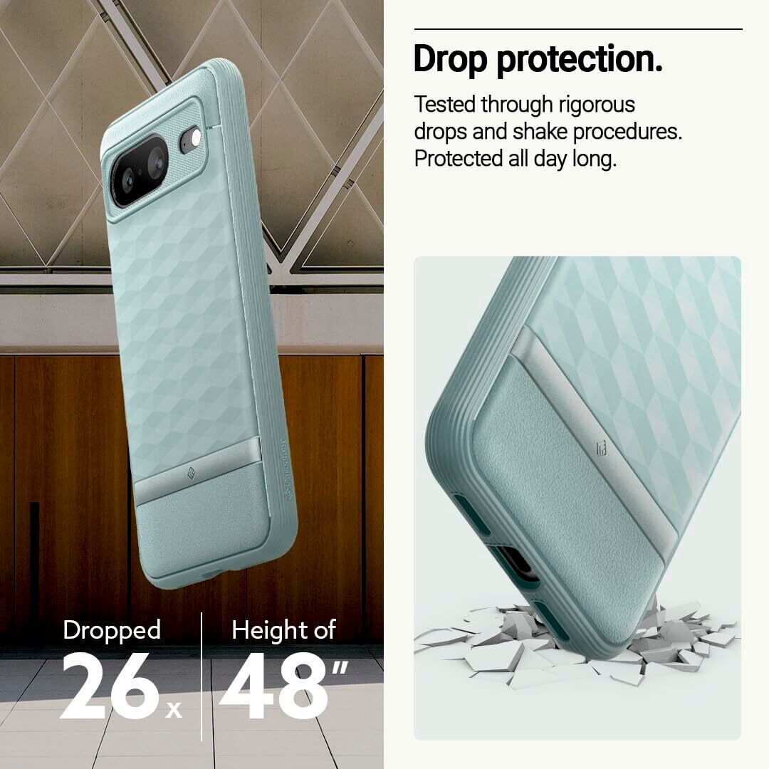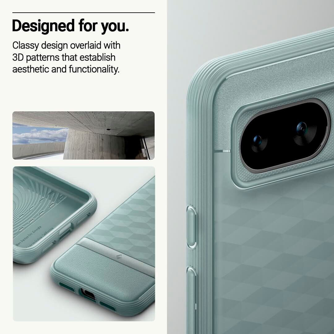 Caseology Google Pixel8 用 ケース 【3D立体パターン】 米軍MIL規格 落下防止 Google Pixel 8 用 カバー パララックス(セージグリーン)