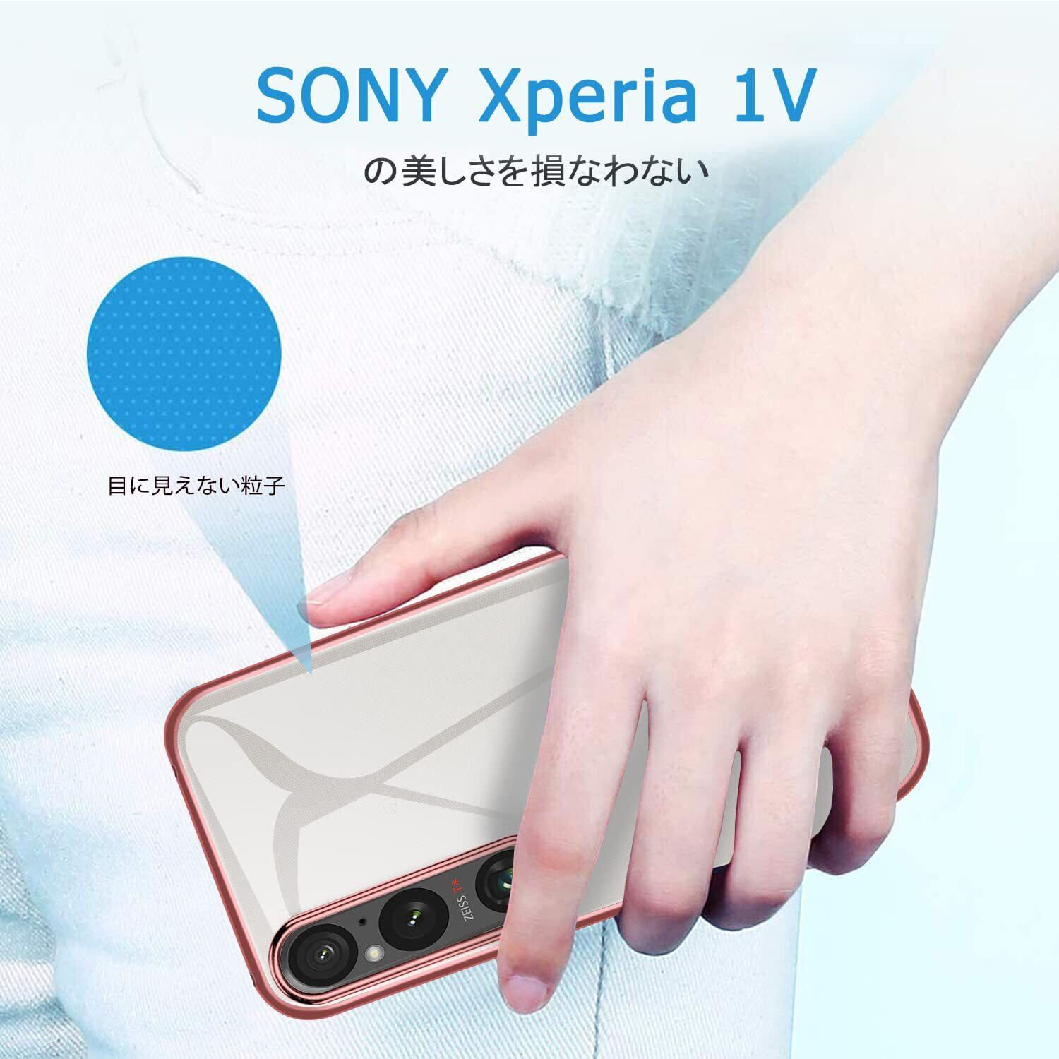 Xperia 1 V ケース クリア SO-51D SOG10 カバー スマホケース 軽量 透明 耐衝撃 スリム TPU 薄型 擦り傷防止 メッキ加工 ストラップホール付き Sony エクスペリア1 V ケース ローズゴールド