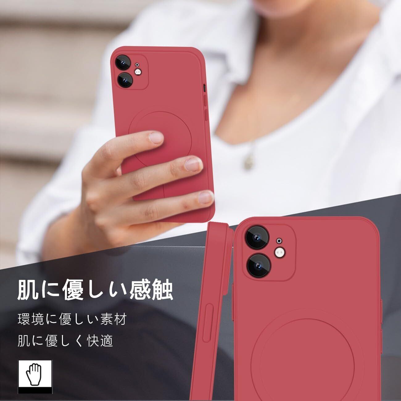 【bjnosdv】マグセーフ対応 iPhone11 ケース いpほね11 MagSafe対応 ワイヤレス充電対応 シリコン 耐衝撃 アイフォン11 カバー 液体シリコーン スマホケース マット質感 柔軟 ストラップホール付き 指紋防止 滑り止め 落下防止 6.1インチ(レッド)