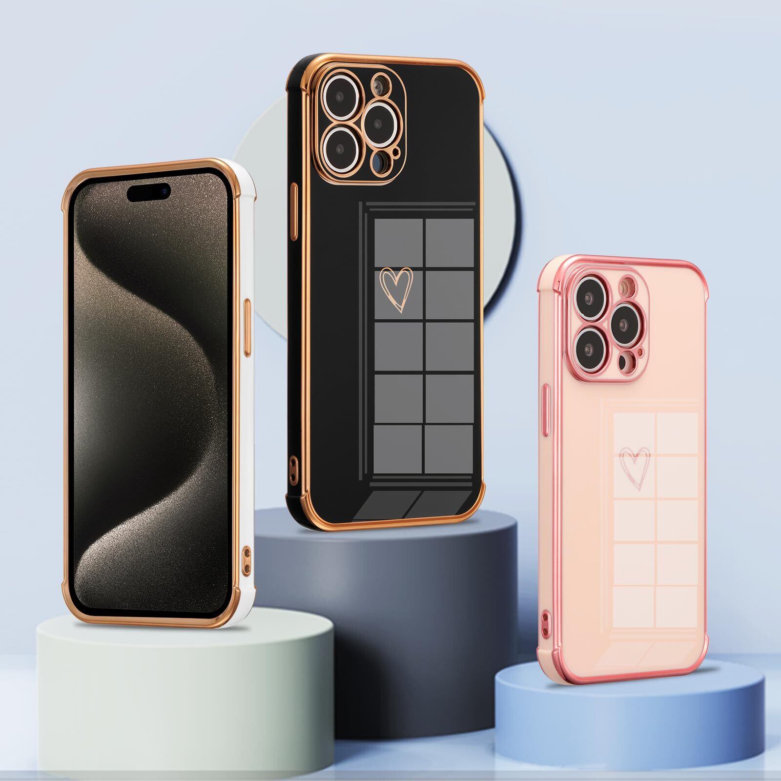 ZTOFERA iPhone 15 Pro Max 用 ハートケース iPhone 15 Pro Max ケース 柔軟な TPU シリコン スマホケース メッキ加工 ソフト 軽量 耐衝撃 おしゃれ 韓国 可愛い アイフォン 15 Pro Max ケース 女子 女性 心パターン 携帯電話カバー ワイヤレス充電対応 (ピンク)
