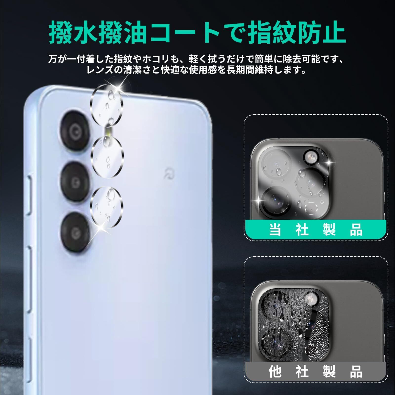 【撥水・撥油コートで指紋防止】当社の極薄カメラ保護フィルムには、高耐久な撥水・撥油コーティングを施しています。汚れや指紋を強力に防止するとともに、なめらかなスライド感を実現。万が一付着した指紋やホコリも、軽く拭うだけで簡単に除去可能です。レンズの清潔さと快適な使用感を長期間維持します。