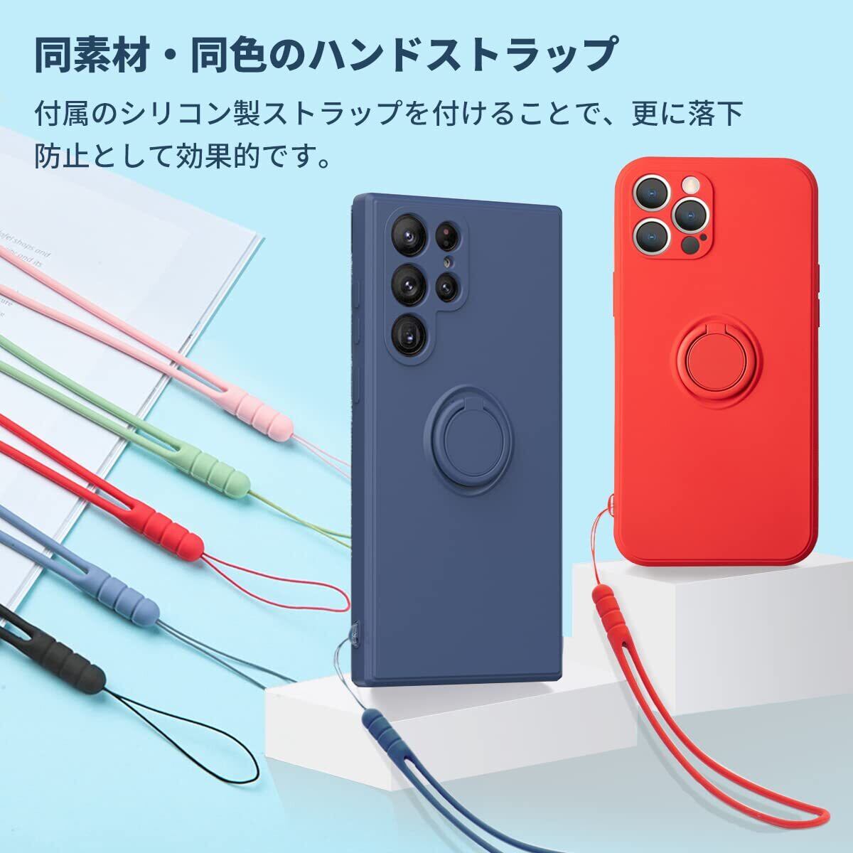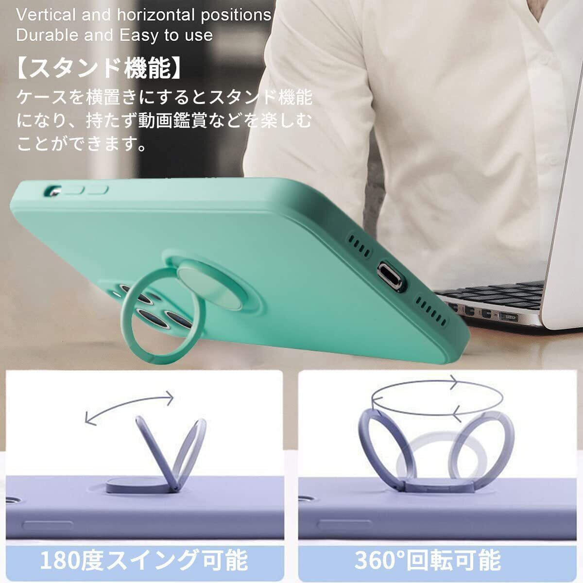 【付属機能】シリコン製ストラップ付き、リング一体型シリコンケース。自由な角度調節ができるリング付き。一指着る式で、指がリングに通り抜け、片手で携帯を操作でき、落下防止します。360度回転可能、180角度調節可能。マグネット対応金属板が付き、マグネット式の車載ホルダーに強く吸着します。リングはスタンド機能としても使用できます。付属のストラップを付けることで更に効果的。*特別ヒント:リング部分は磁石ですので、ワイヤレス充電できません。