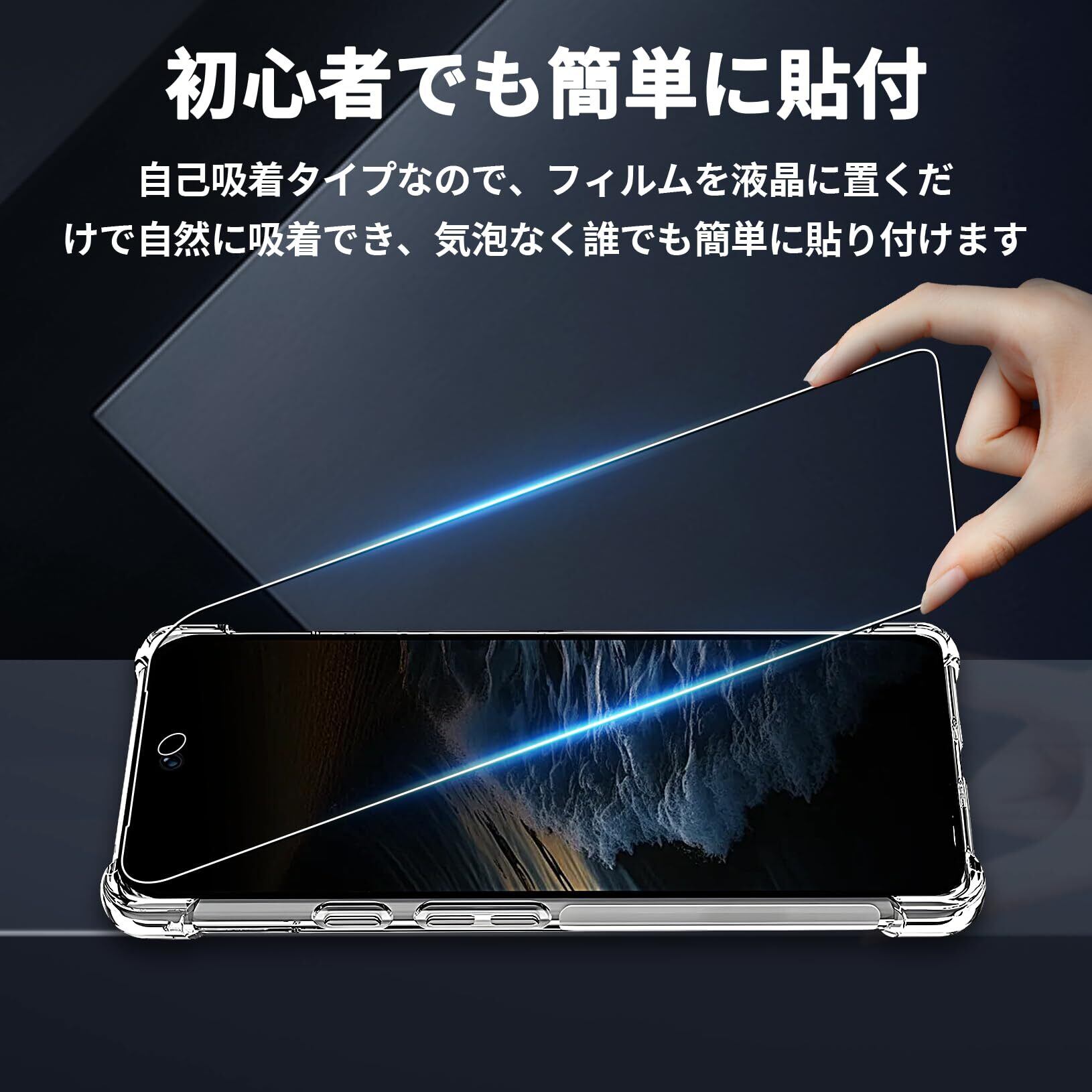 【貼り付けやすい・油防止・指紋防止】seninhiフィルムの自動吸着機能を使って初心者さえも簡単に貼り付けることができます。更に気泡も入りにくいです。フィルムを貼る前に、ホコリ取りシールで細かいホコリを取り除き、気泡の防止をお勧めします。更に私たちの強化ガラスフィルム表面にナノポリマーコーティングを設計しており、これにより油防止、指紋防止できます。汚れや油などが付いでも、簡単に軽くだけできれいになります。