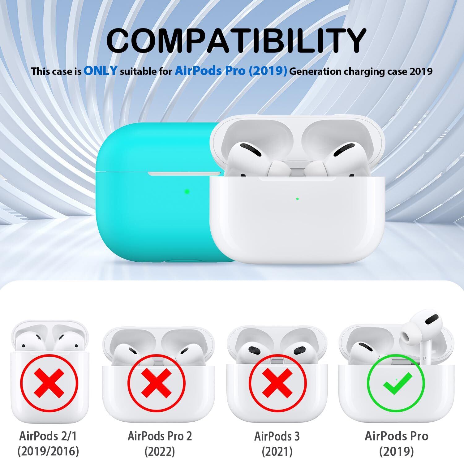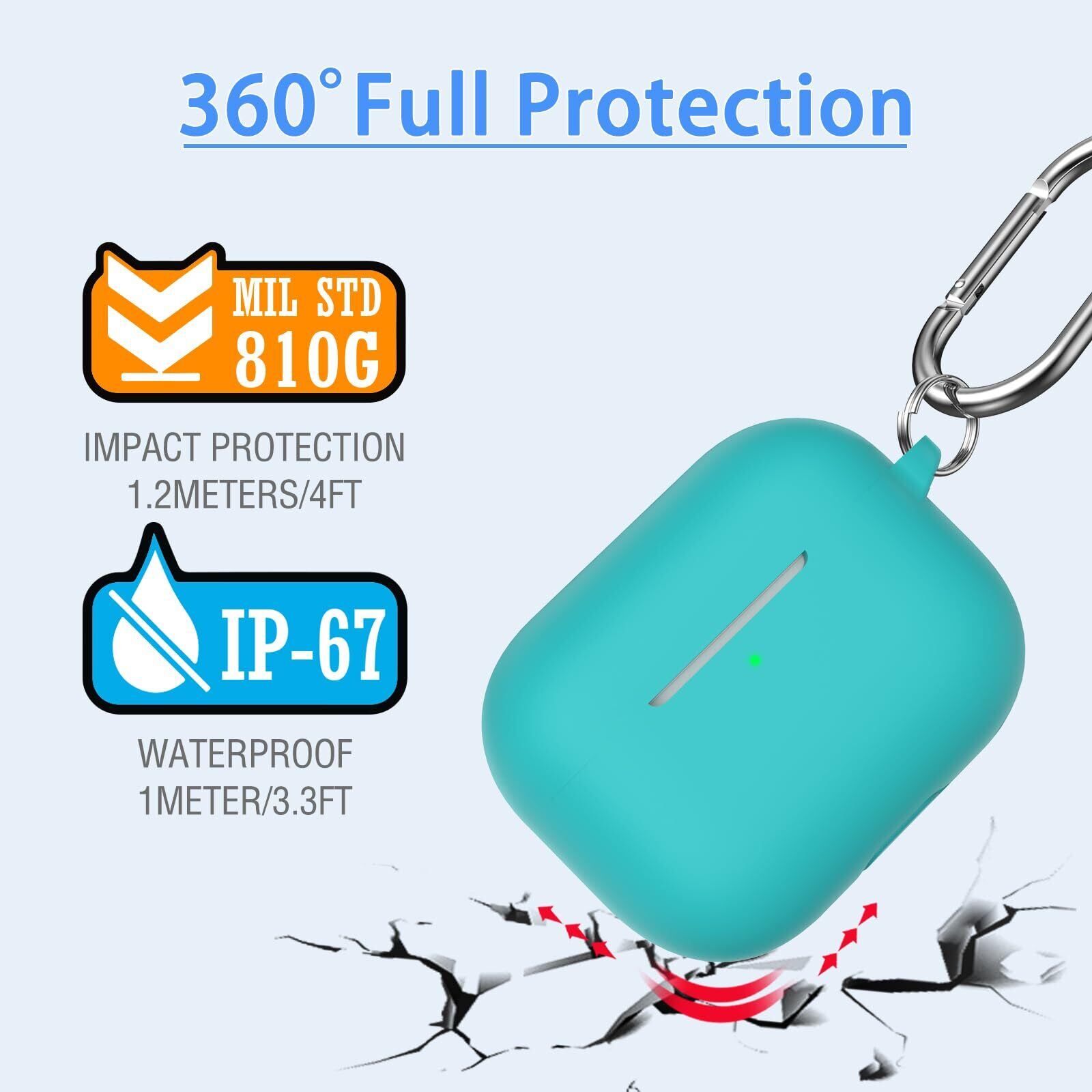 MHYALUDO AirPods Pro ケースカバー、軍用グレードの落下防止ソフトシリコン衝撃吸収保護保護 AirPods Pro 第 2/1 世代ケース、キーチェーンとクリーニングキット付き、フロント LED 可視、ティール