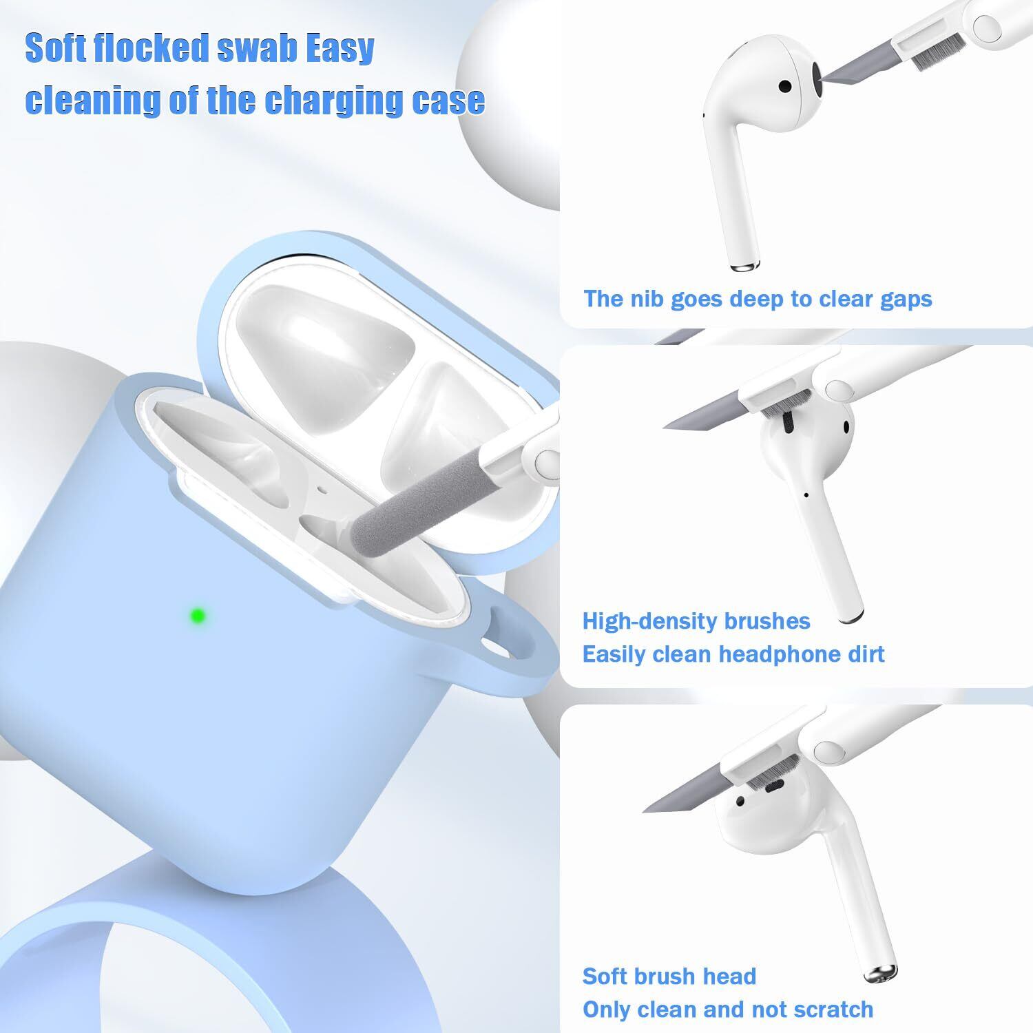 MHYALUDO AirPods ケースカバー、AirPods 第 2 世代と第 1 世代用のソフトシリコン衝撃吸収保護ケース、スキンタッチキーチェーンとクリーニングキット付き、フロント LED 可視、スカイブルー
