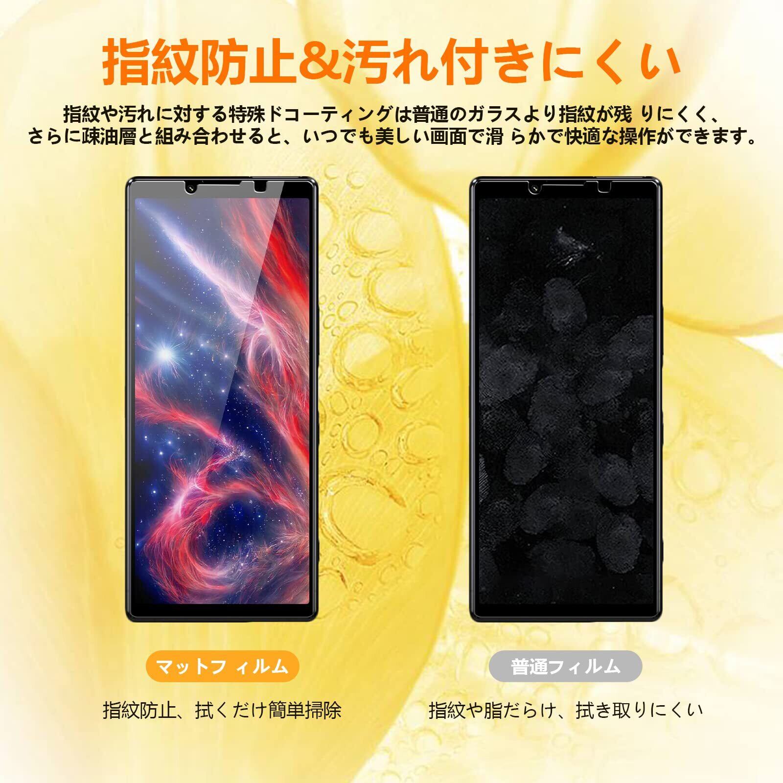 【指紋防止、高透過率、高品質】エクスペリア10マーク3 ガラスフィルムには撥油コーティングが施されており、指紋や汚れなどに強くなめらかな操作感を実現、付着した汚れなどは簡単に拭きとれます。透過率98%超えのえくすへ10III 保護 がらすで、液晶画面の鮮明度を損なうことなく画面本来の美しさをそのまま表現。