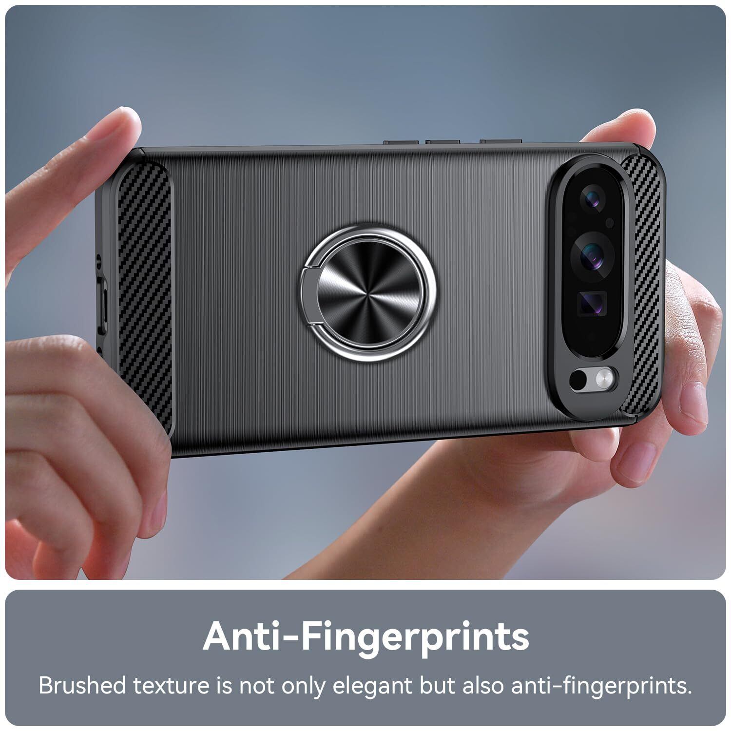 [対応機種] Google Pixel 9 Pro XL 専用ケース。[操作感とスムーズ感] 上質な炭素繊維調のTPU素材を採用しており、最高な手触り心地あり、耐衝撃で滑りにくく、傷や埃や指紋を防ぐことができます。装着感と耐久性備えて、変色変形しにくくなっています。ケースは、型どりを緻密に実施しており、携帯電話本体に完璧にフィットするとともに、持ったときの圧倒的なフィット感も実現しています。精密なデザインで、装着状態でも電源ボタン、音量ボタン、コネクター等が問題なく利用できます。[精密設計] リング内側部分にメタルプレートを採用、マグネット式車載スマホマウントホルダー に対応で、直接吸着させることができます。ケースを横置きにするとスタンド機能になり、持たず動画鑑賞などを楽しむことができます。音量や電源ボタンの位置が精密で正確!だからケースをしたままボタン操作がしやすい。[画面・レンズまで保護] カメラレンズより高く設計し、電源ボタンも覆われているので、レンズやボタンをキズから保護できます。放熱性高いのデザインなので、熱を効果的に放散し、バッテリーにとても優しいです。[安心のサポート] 弊社による厳格な品質検査を実施しており、安心してご購入ください。ご購入日から1ケ月を提供しております。ご利用中何か問題がございましたら、お気軽にこちらまでご連絡ください。