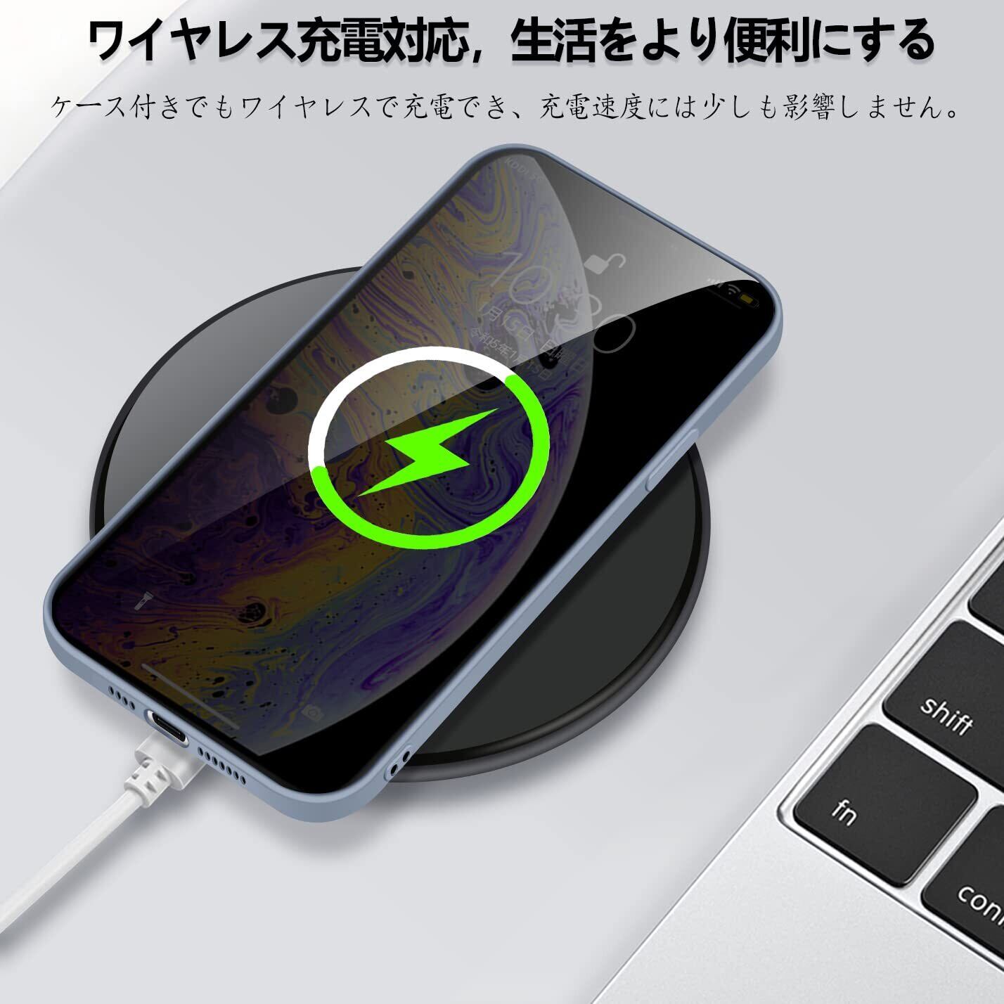 iPhoneXsmax ケース リキッドシリコン 耐衝撃 レンズ保護 薄型 iPhonexs max カバー 指紋防止 ソフト ワイヤレス充電対応 おしゃれ ストラップホール付き (グレー)