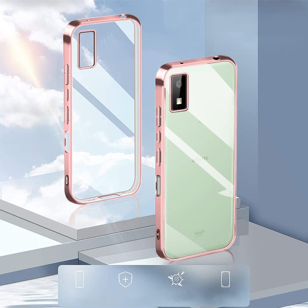 【特価セール】AQUOS wish3 ケース SH-53D カバー クリア スマホケース 透明 薄型 耐衝撃 メッキ加工 TPU ストラップホール付き アクオス wish3 カバー ローズゴールド