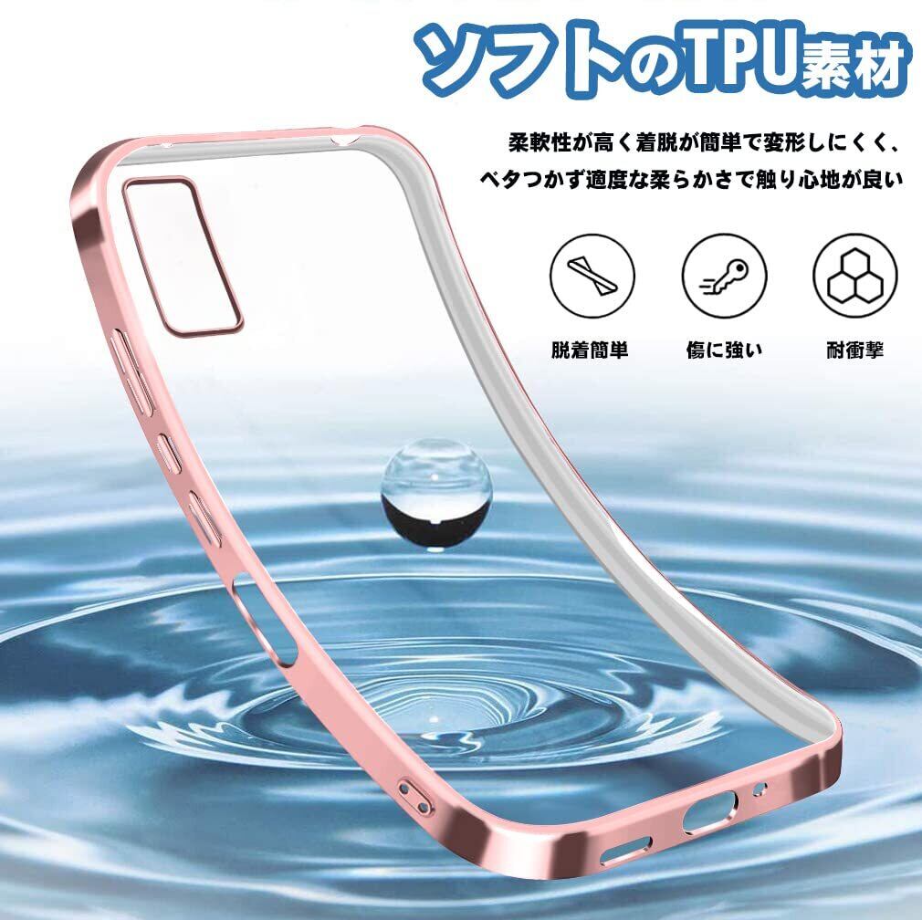 AQUOS wish3 ケース SH-53D カバー クリア スマホケース 透明 薄型 耐衝撃 メッキ加工 TPU ストラップホール付き アクオス wish3 カバー ローズゴールド