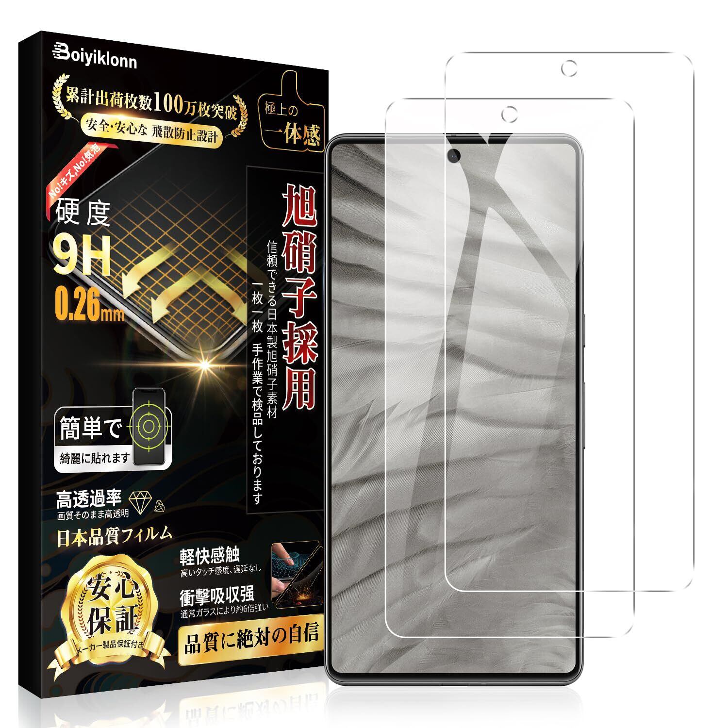 Boiyiklonn 対応 Google Pixel 7a ガラスフィルム (2枚) Pixel 7a フィルム【旭硝子日本製】強化ガラス 硬度9H 高透過率 自動吸着 気泡 指紋 飛散防止 撥水撥油 貼り付け簡単 グーグルピクセル7a 保護フィルム- 6.1''
