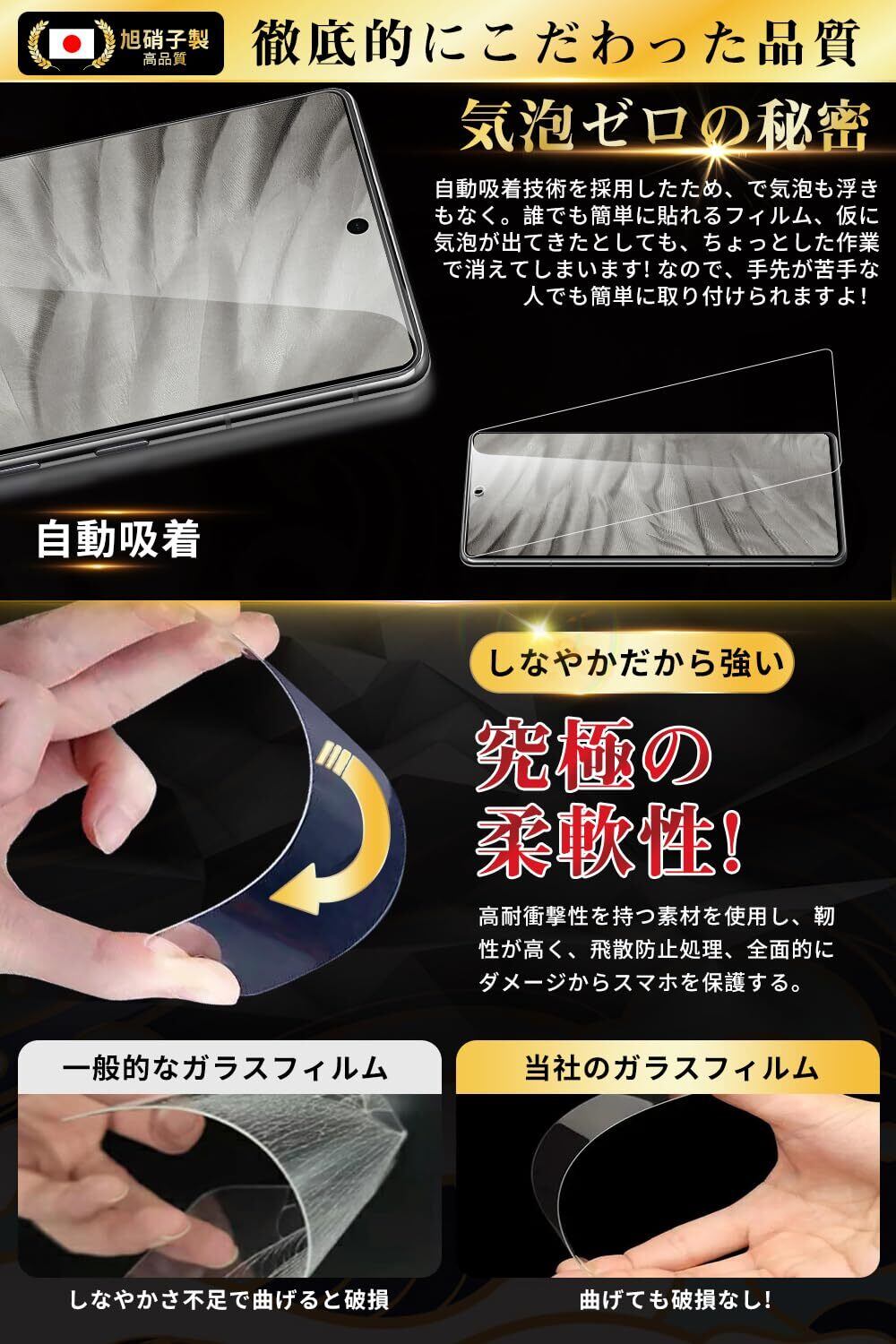 制限数量を超える在庫数が必要な場合は、お問い合わせください。【品質】 365日内商品使用上何か問題がある場合、お気軽に弊社までご連絡くださいませ。お客様からのお問い合わせ内容に応じて代替品交換・返金対応を提供致します。(商品の返送は不要、お一人様につき1回限り) 【日本旭硝子素材採用!圧倒的な耐衝撃性・飛散防止!】徹底的にこだわった品質、信頼できる日本製旭硝子素材を採用、通常ガラスフィルム などと比べ、強度、耐傷性、質感のすべてにおいて優れた性質を持ちます。安心してご使用いただけるように、一枚一枚、手作業で検品しておりました。また、Google Pixel 7A ガラスフィルム卓越した耐衝撃性能を持って、落下への衝撃からしっかりと保護。万が一強力な衝撃でガラスフィルムが割れてしまっても、破片の飛び散りを防ぐ飛散防止コート処理で、画面をしっかり保護、スマートフォン をよく保護できます