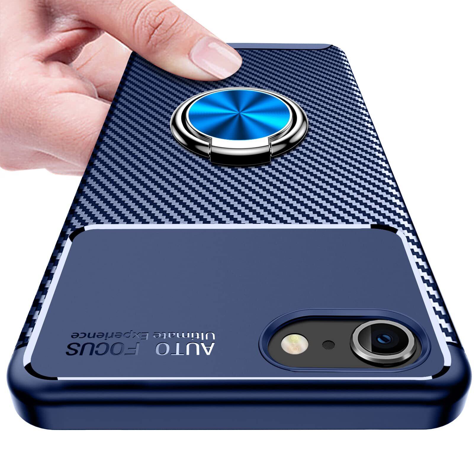 iPhone SE3用 ケース 2022 iPhone SE用 ケース 第2世代 iPhone8用 ケース iPhone7用 ケース リング付き TPU 炭素繊維スマホケース 衝撃吸収 スタンド機能 薄型 360回転 車載ホルダー対応 散熱加工 指紋防止 スリム ソフト アイフォンse3/se2 携帯カバー 青 KC8-3