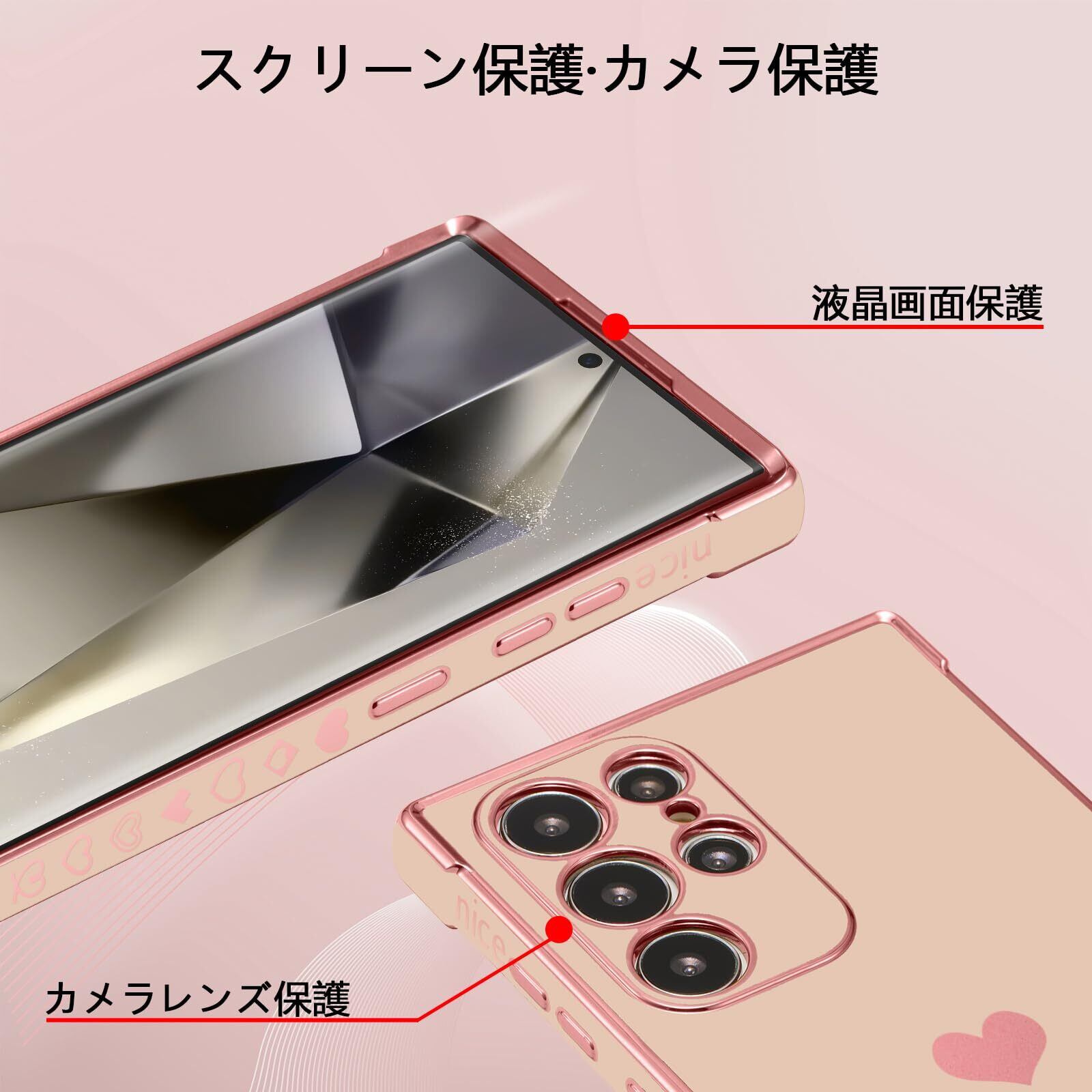 【特価商品】QLTYPRI Galaxy S24 Ultra ケース docomo SC-52E / au SCG26 TPU カバー ハート 模様 おしゃれ 韓国 可愛い シンプル 薄型 軽量 レンズ保護 耐衝撃性 スマホケース ワイヤレス充電対応 ストラップホール付き ギャラクシーS24 Ultra ケース - ピンク