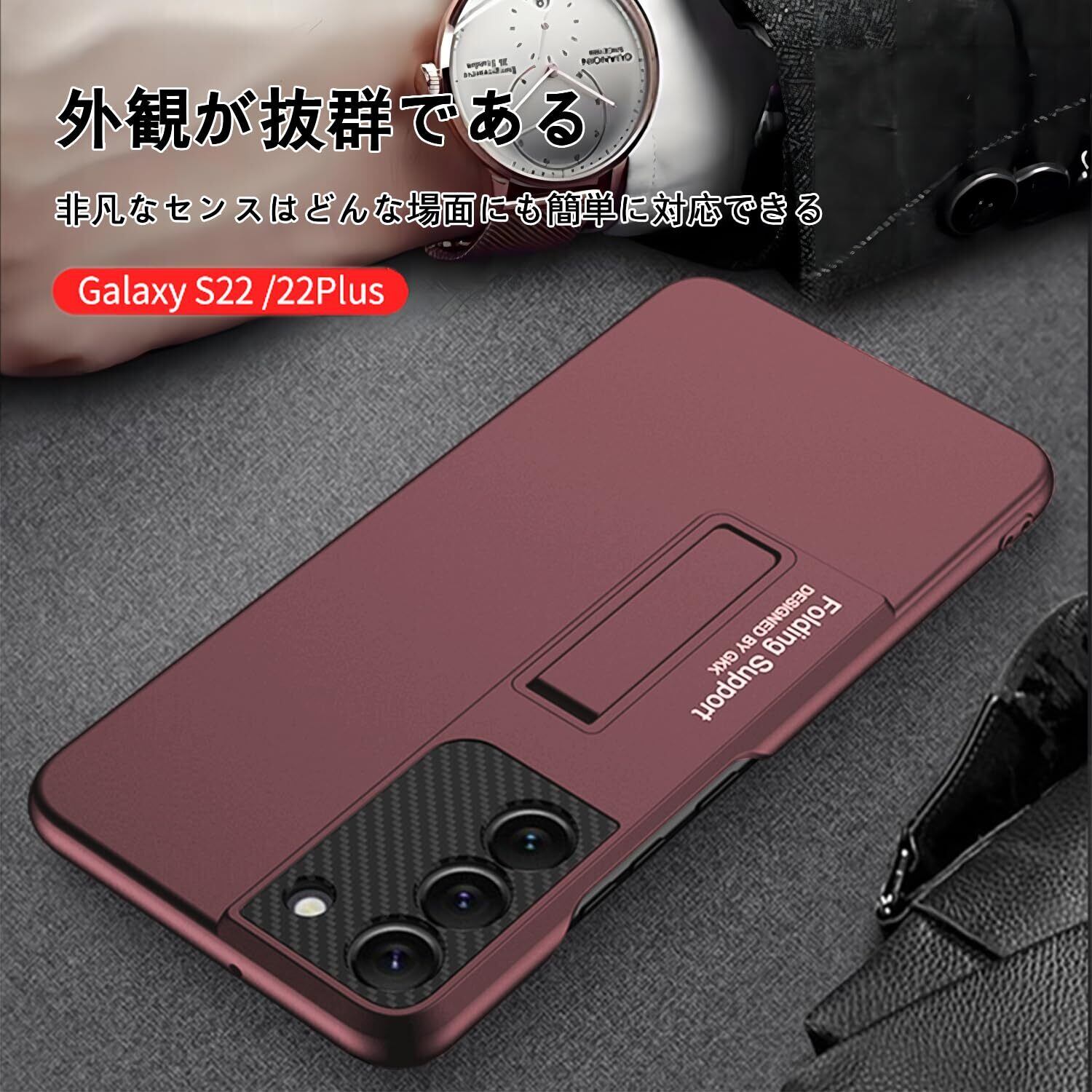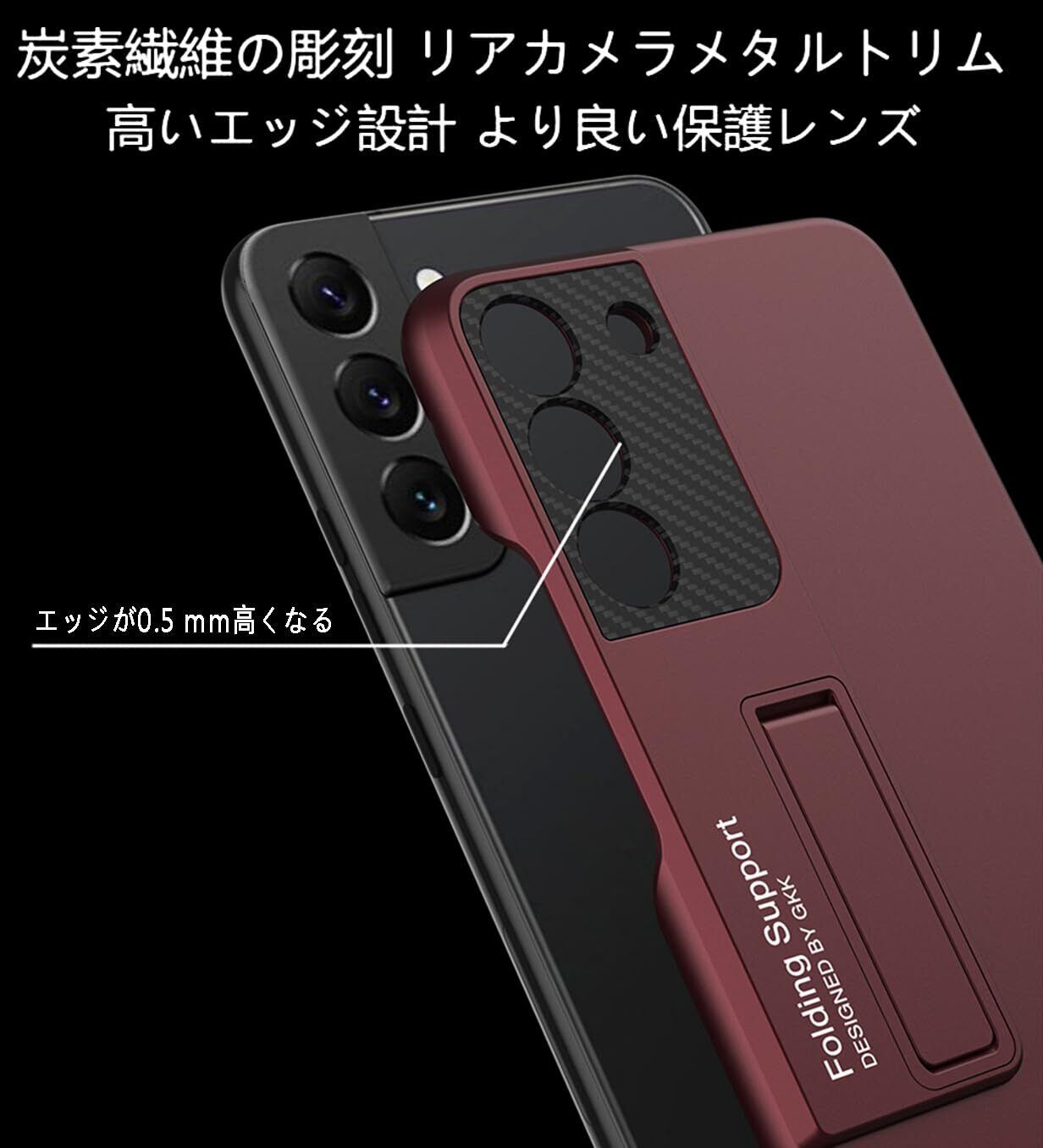 【新着商品】【Mankera】 Galaxy S22 携帯ケース、スタンド付きケース、スマホケース、薄型 軽量ケース、レンズ保護、ワイヤレス充電対応、革新的で ケース(レッド)