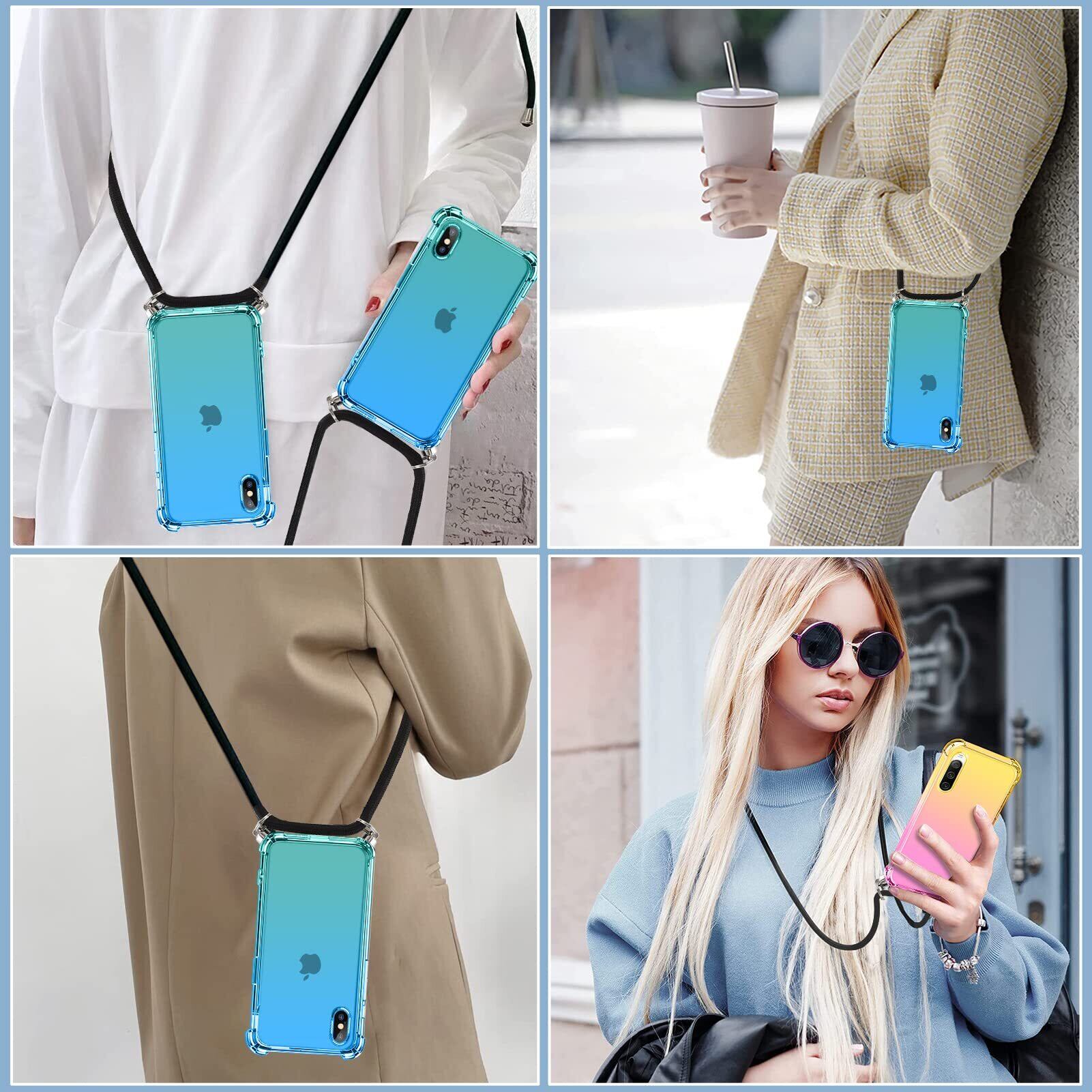 【魅力なグラデーションの色感&実用的な小さなデザイン】透明な背面は本体の美しさを示し、グラデーションの色は、よりスタイリッシュに感じられます。は、長さを調整できる柔らかいロープを備えており、手に掛けたり、首にかけたり、肩にクロスボディを掛けたりすることができ、すべてが快適な長さを持つことができ、このデザインは電話の落下や紛失を防ぐことができ、手で持つ必要がなく、非常に実用的です