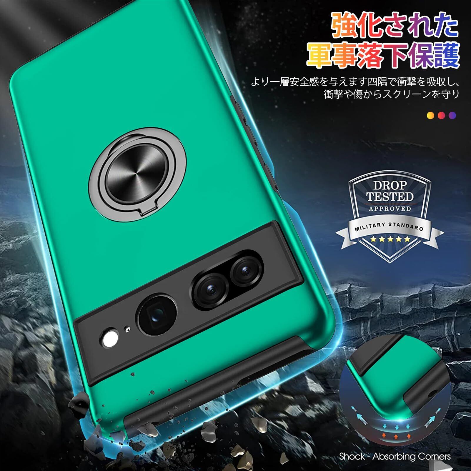 【特価セール】Google Pixel 7 ケース リング付き 耐衝撃 tpu pc 二重構造 全面保護 一体型スマホケース グーグル ピクセル 7 ケース 衝撃吸収 シリコン 360°回転 スタンド機能 軽量 薄型 車載ホルダー対応 米軍MIL規格 指紋防止 人気 携帯カバー 緑 ZW75-100