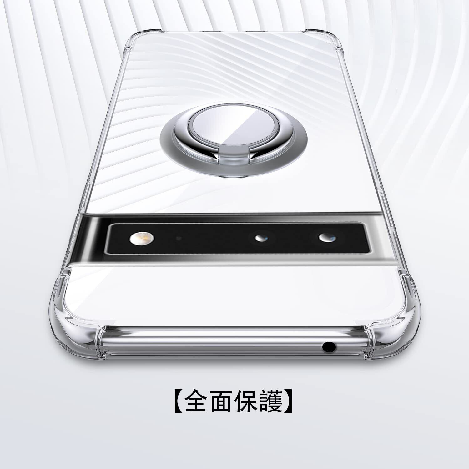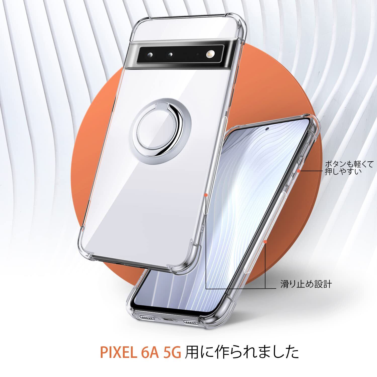 Rockaway Google Pixel 6A 5G 用 ケース リング付き 耐衝撃 すり傷防止 四隅がエアクッション構造 スタンド機能 軽量 薄型 TPU ソフト 透明 ケース グーグルピクセル6a 5g カバー -クリア